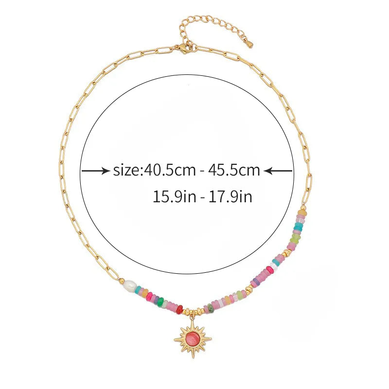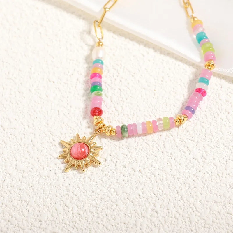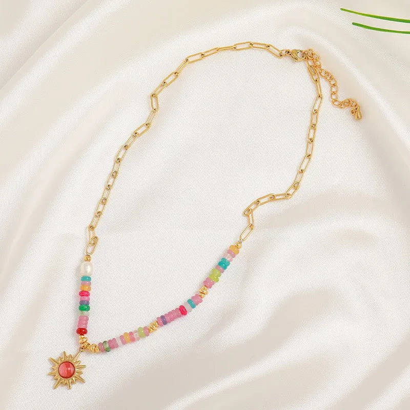 Elegant French Style Bohemian Round Sun 18K Gold Plated Natural Stone Natural Stone Titanium Steel Wholesale Pendant Necklace