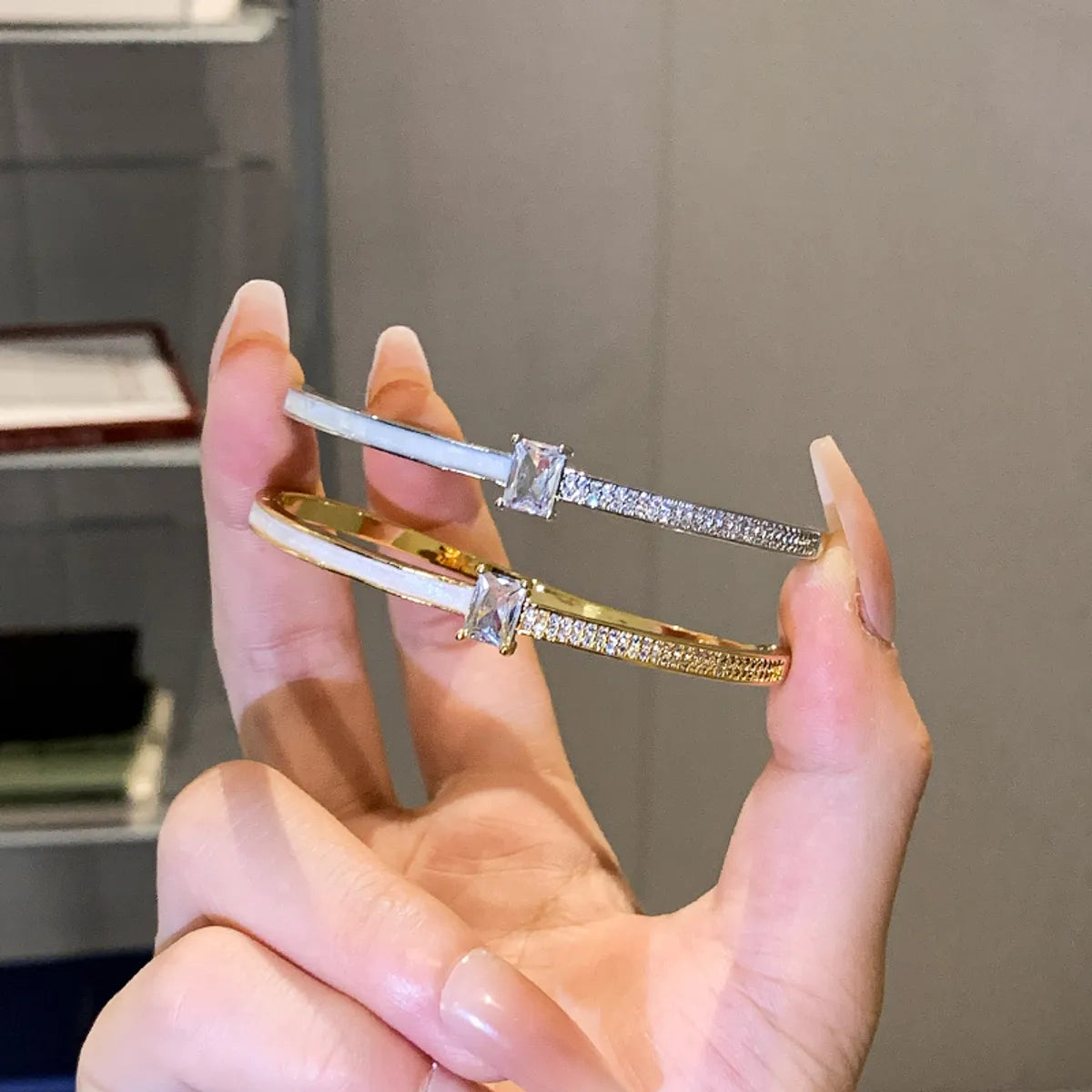 Elegant Glam Geometric Copper Plating Inlay Zircon 18k Gold Plated Silver Plated Bangle