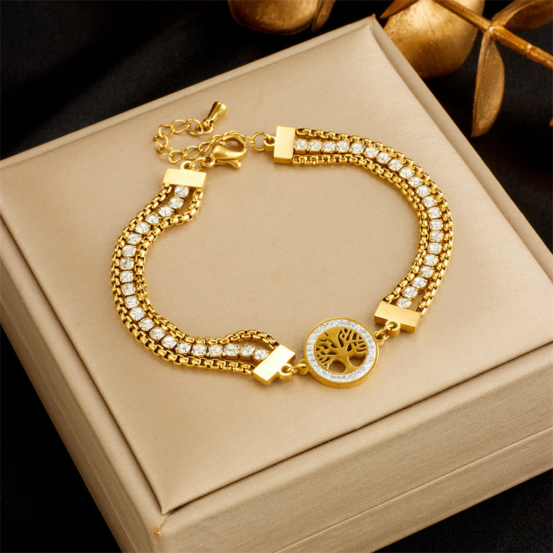 Elegant Lady Geometric Titanium Steel Inlay Zircon Bracelets