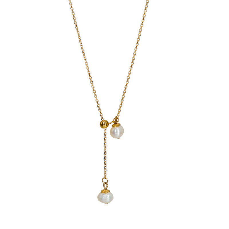 Elegant Romantic Solid Color Freshwater Pearl Titanium Steel Plating 18k Gold Plated Pendant Necklace