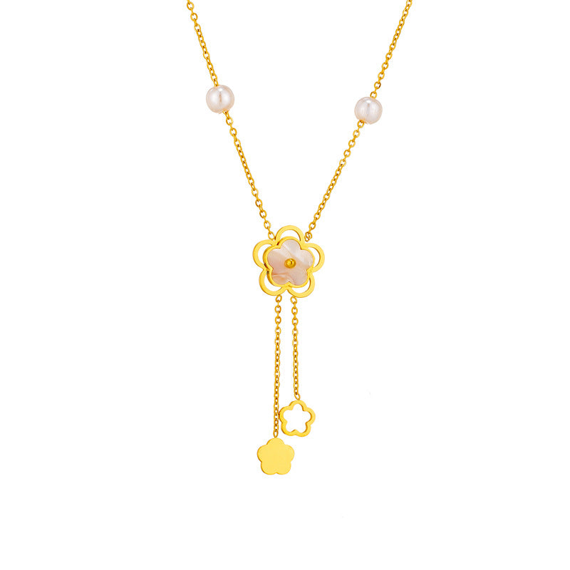 Elegant Tassel Flower Stainless Steel Plating 18k Gold Plated Pendant Necklace