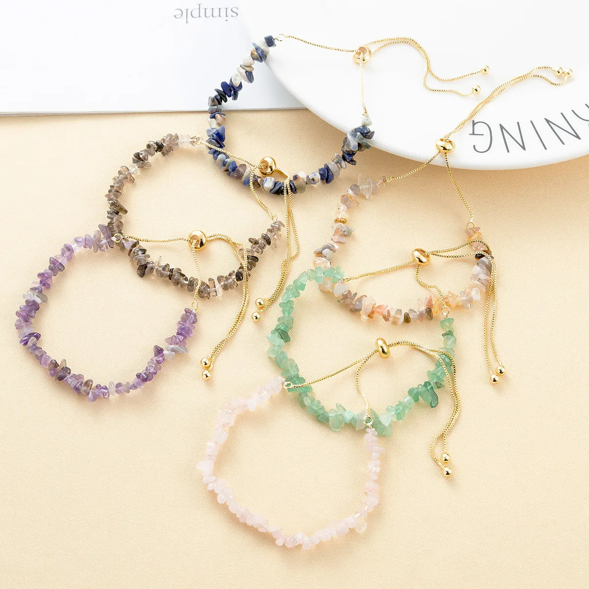 Ethnic Style Geometric Stainless Steel Natural Stone Beaded 14k Gold Plated Drawstring Bracelets