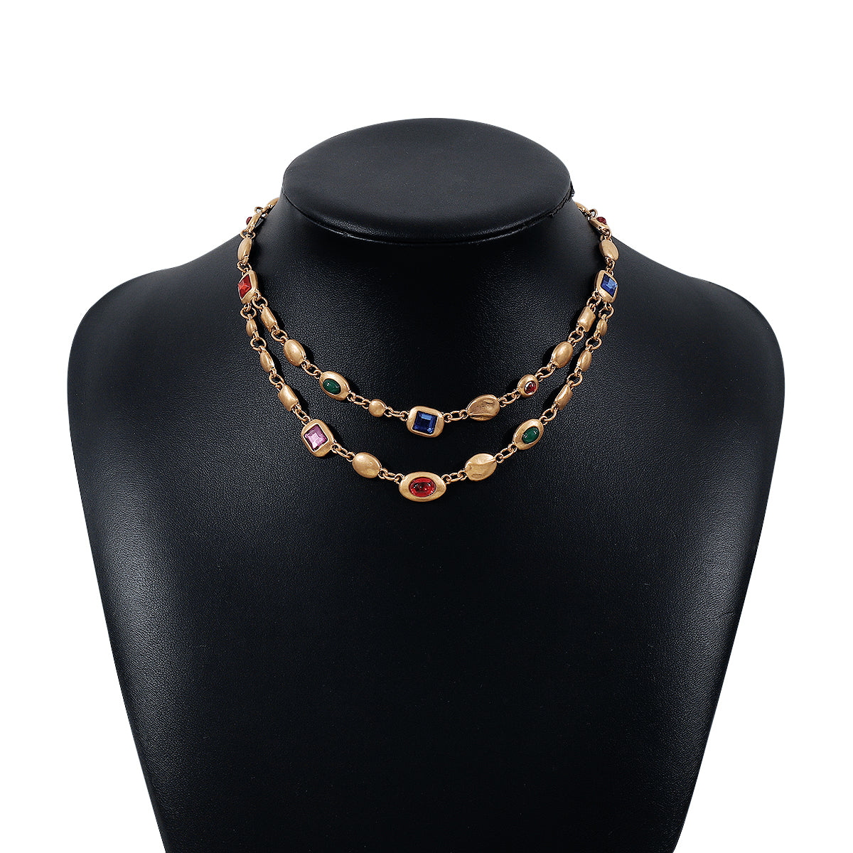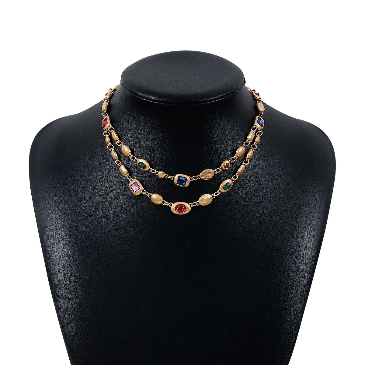 Ethnic Style Simple Style Color Block Alloy Glass Women's Layered Necklaces