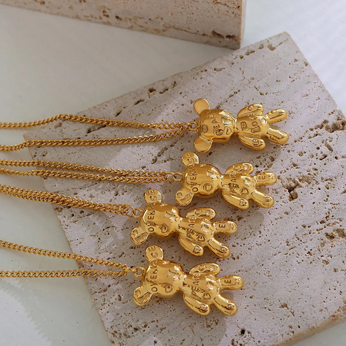 European And American Style Light Luxury Letter Bear Titanium Steel Plated 18k Real Gold Necklace