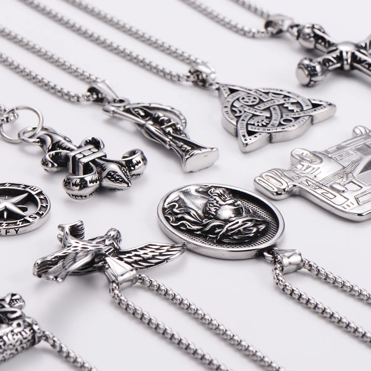 Exaggerated Punk Human Geometric Cross 304 Stainless Steel Polishing No Inlaid Men'S Pendant Necklace