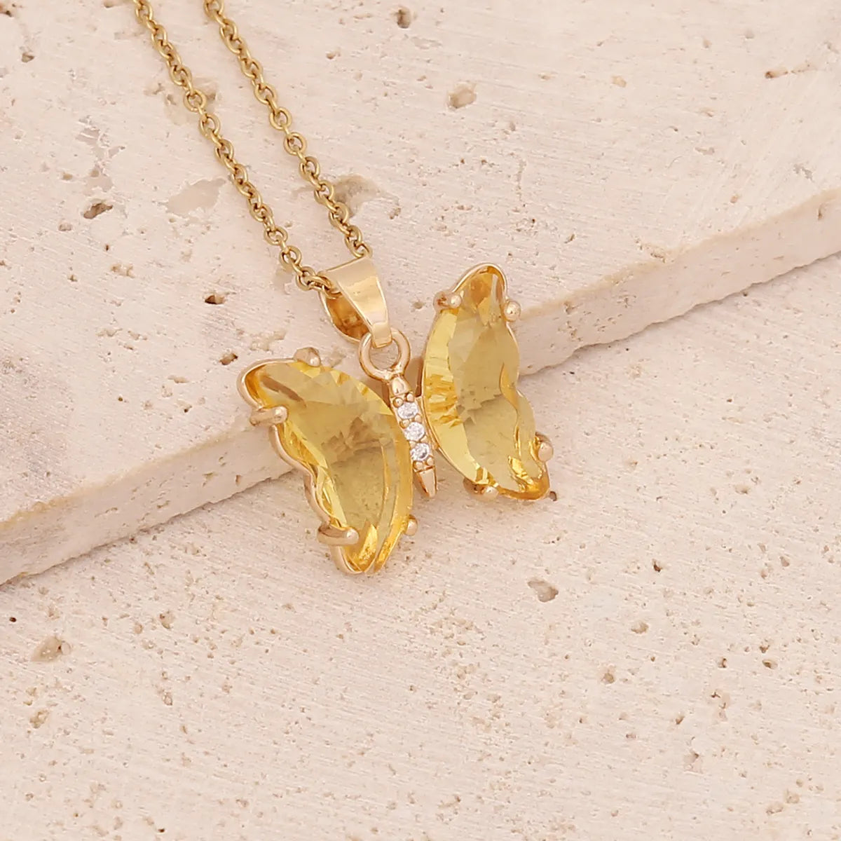 Fairy Style Butterfly Stainless Steel Necklace Inlay Crystal Stainless Steel Necklaces 1 Piece