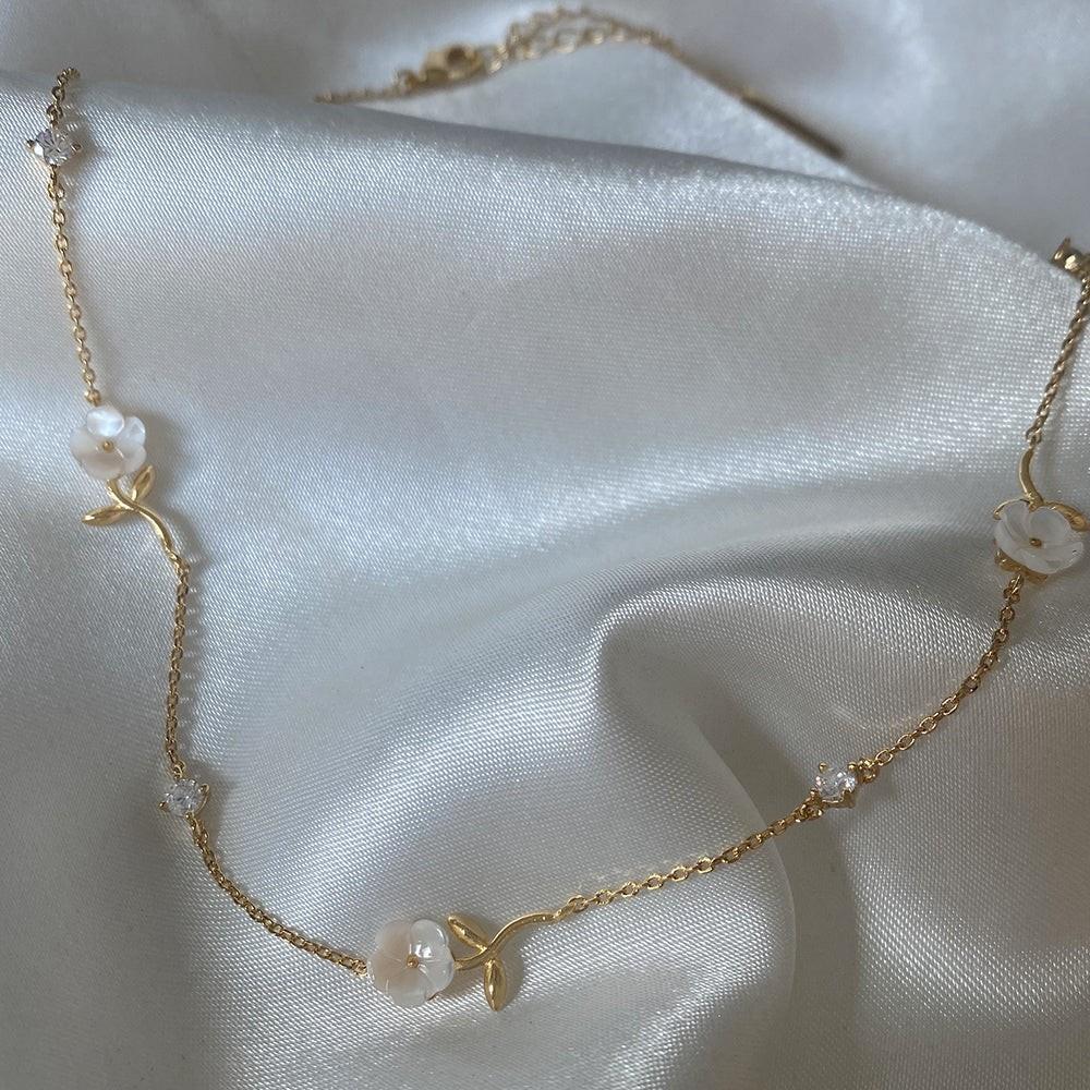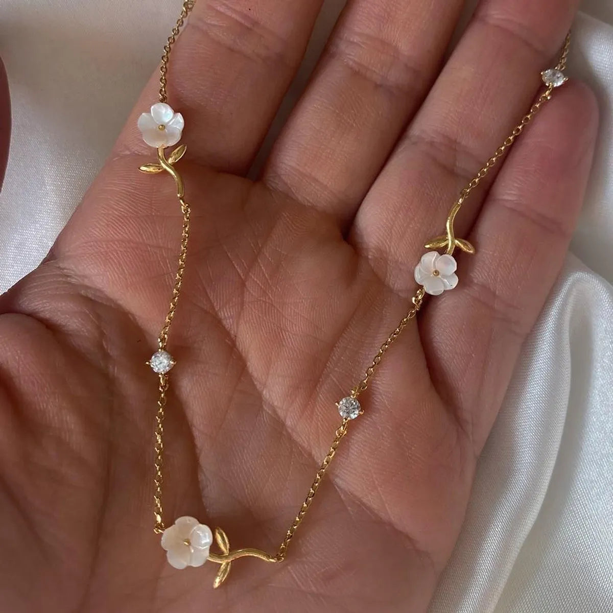 Fairy Style Flower Copper Gold Plated Shell Zircon Necklace In Bulk
