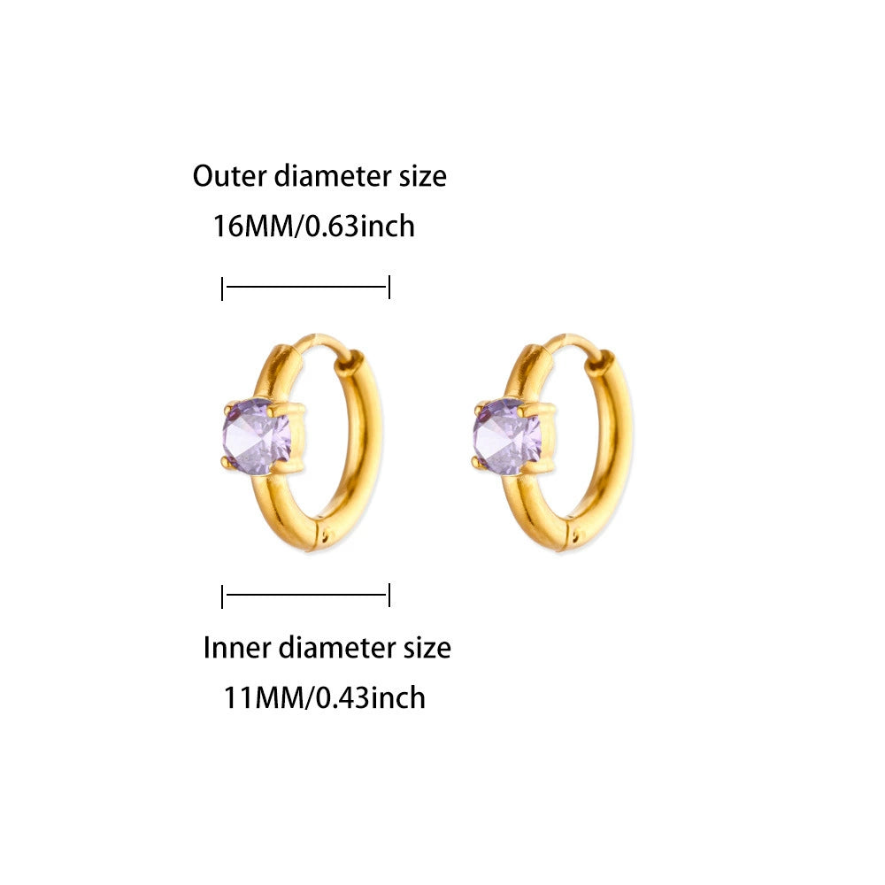 Fashion Birthstone Earrings Women's Stainless Steel Alloy Inlaid Artificial Gemstones Semiprecious Stones Micropaved