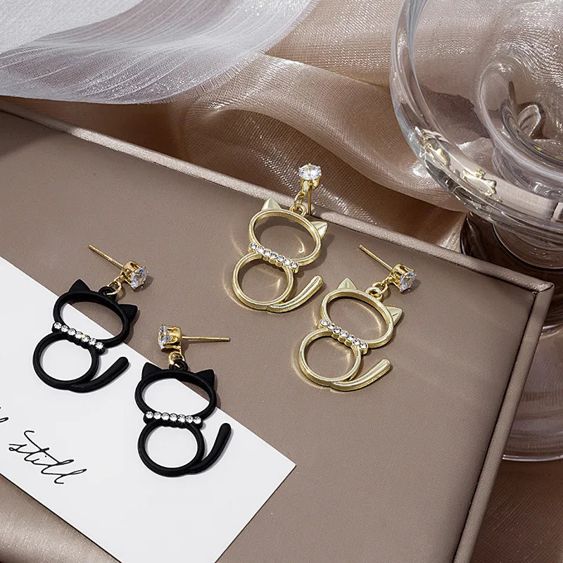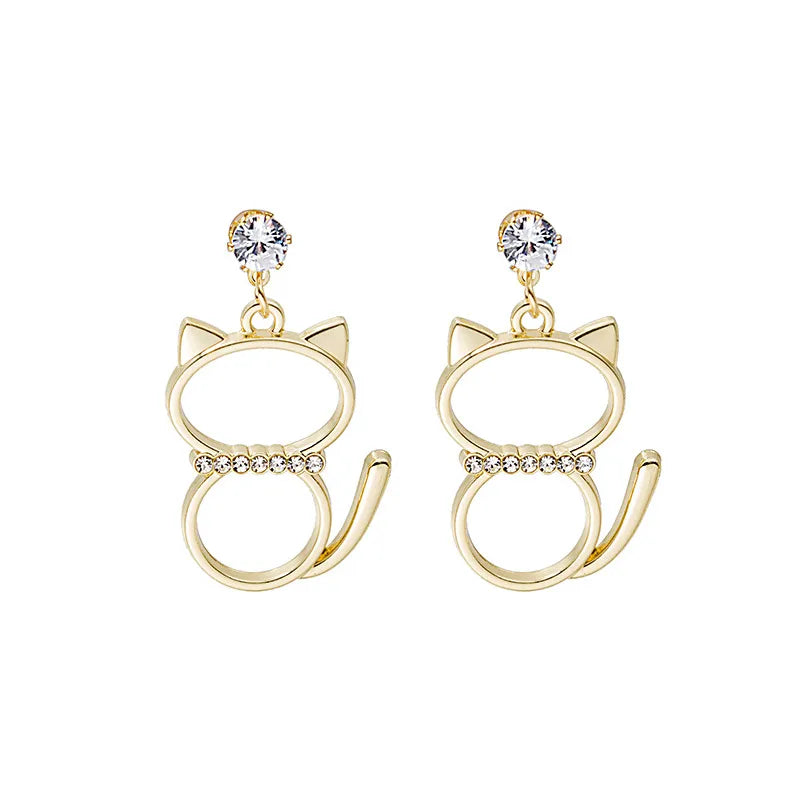 Fashion Cat Alloy Plating Hollow Out Inlay Zircon Women'S Drop Earrings 1 Pair