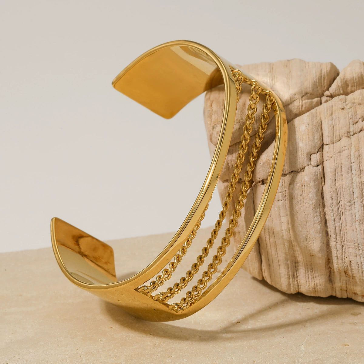 Fashion Commuting Simple Geometric Open Stainless Steel Bracelet With Electroplating Color Preservation And Niche Personality Design