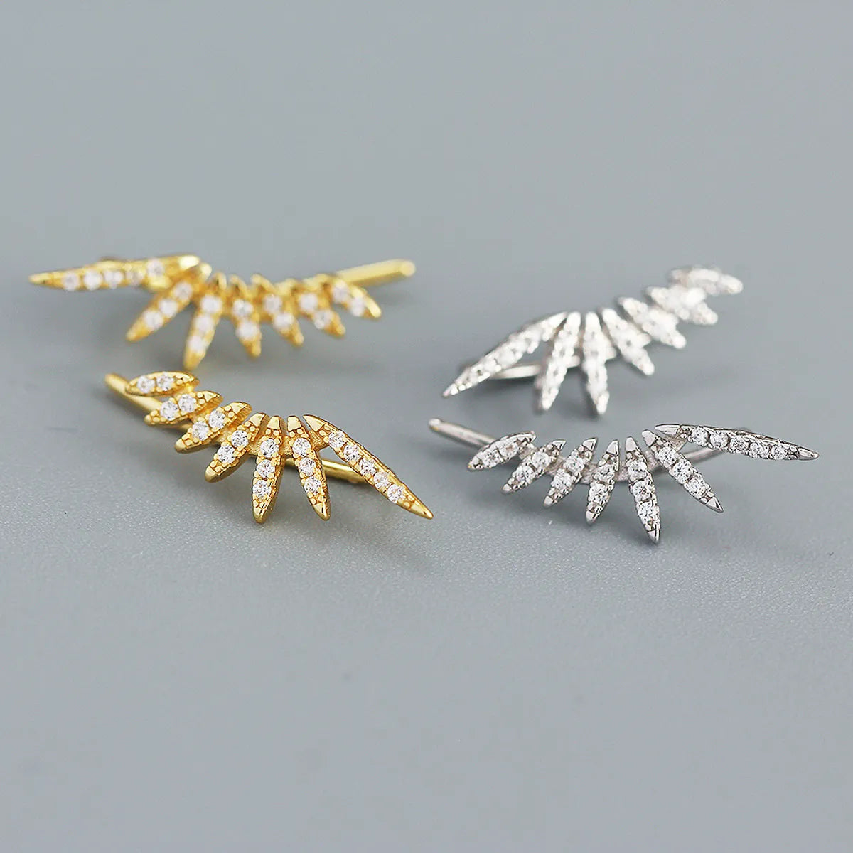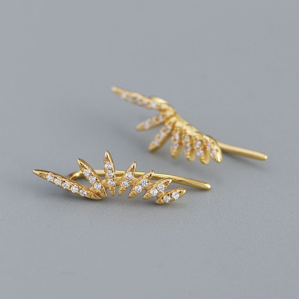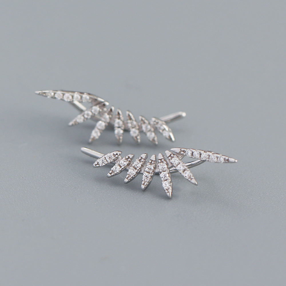 Fashion Feather Sterling Silver Plating Zircon Ear Studs 1 Pair