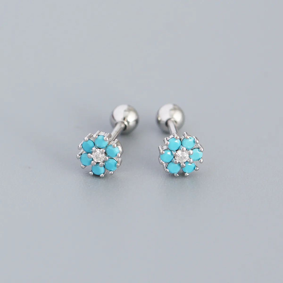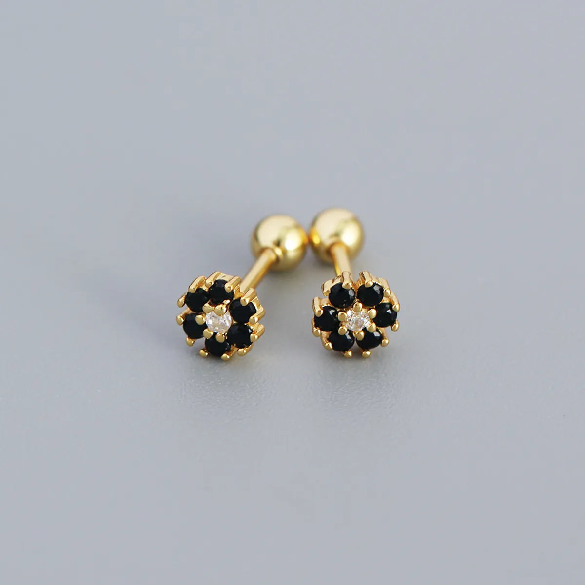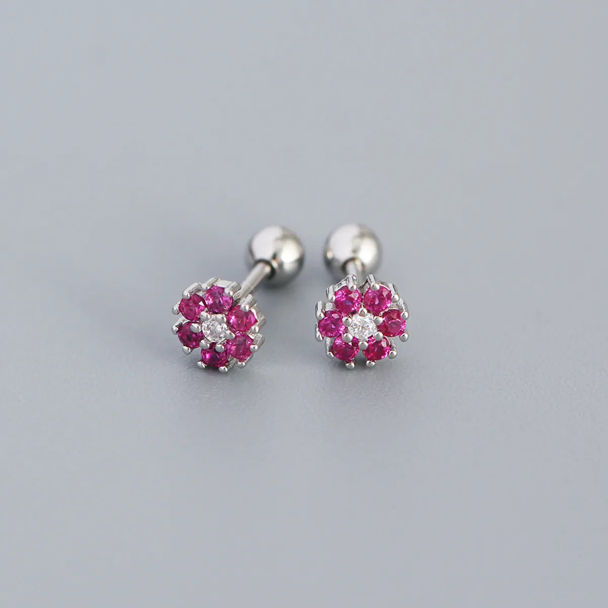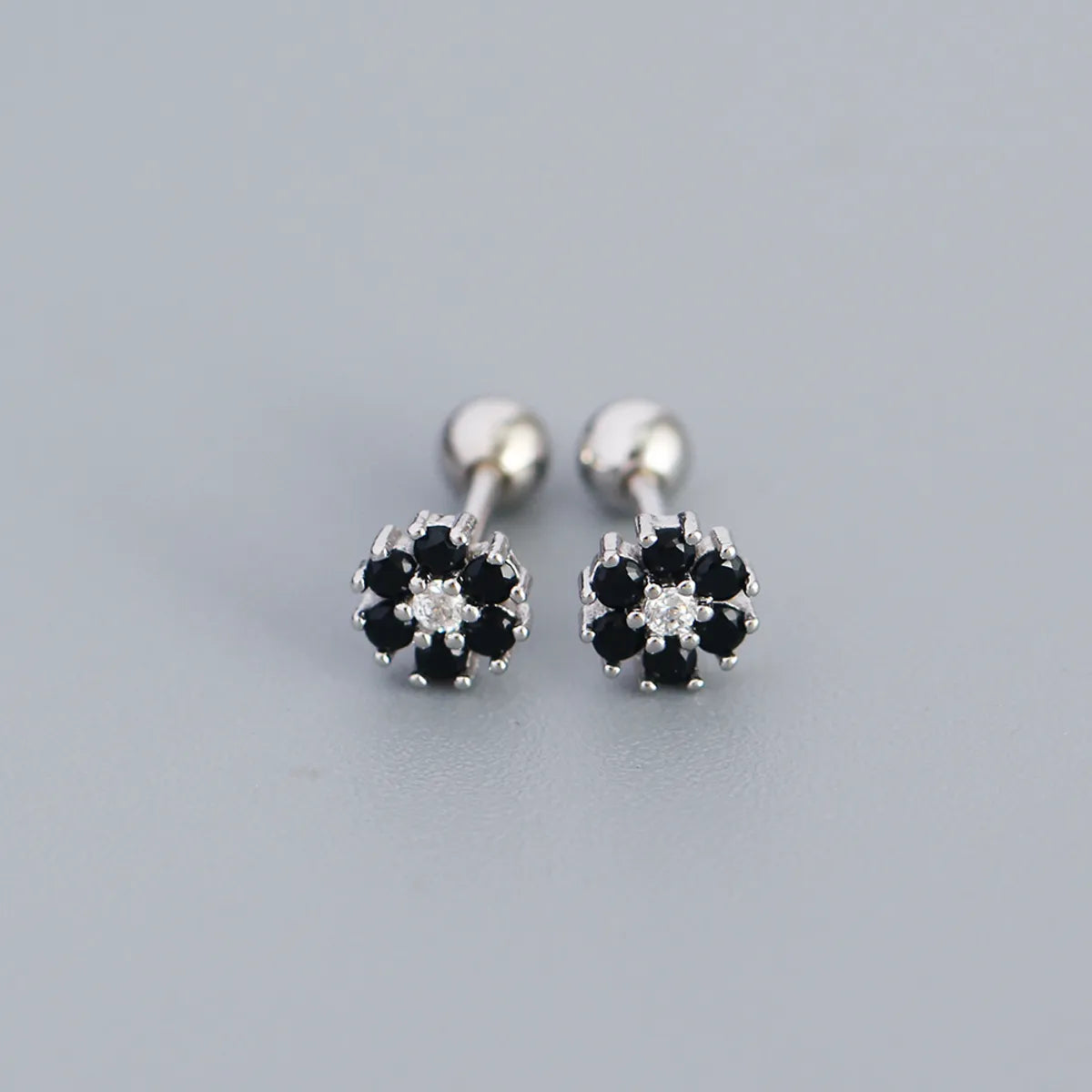 Fashion Flower Sterling Silver Zircon Ear Studs 1 Pair