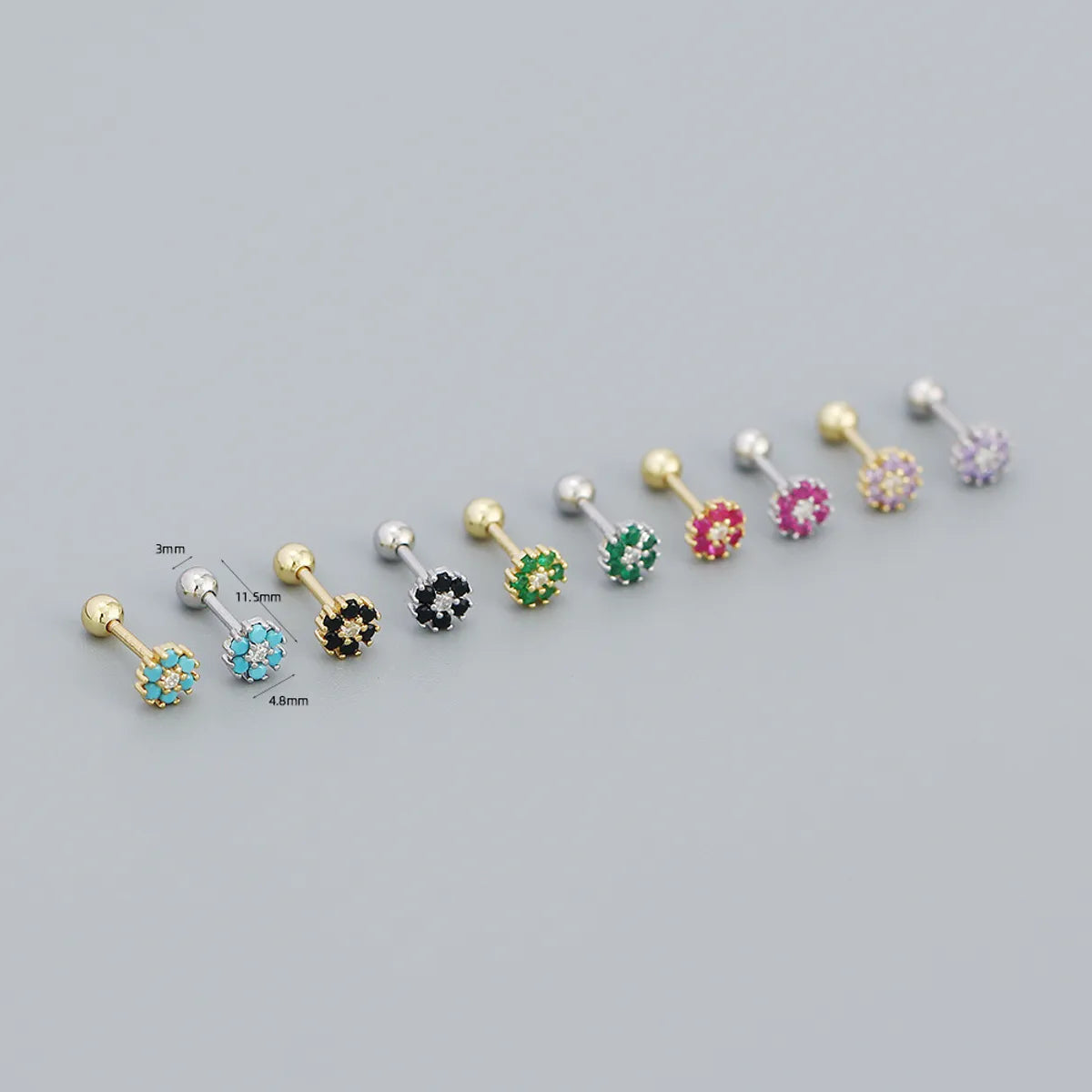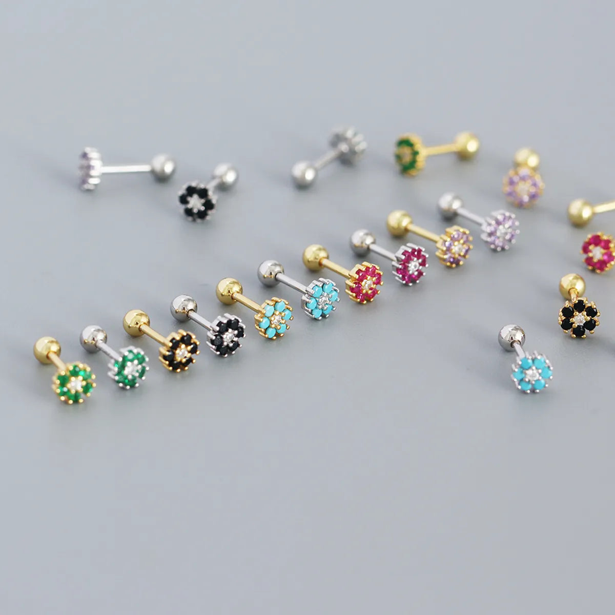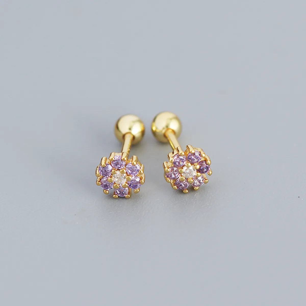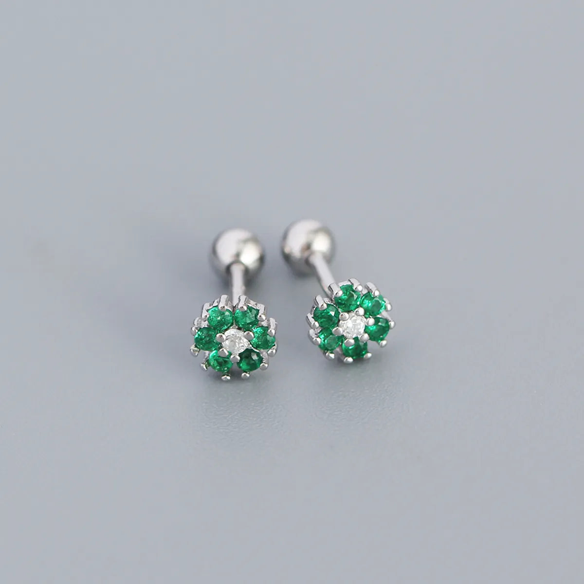 Fashion Flower Sterling Silver Zircon Ear Studs 1 Pair