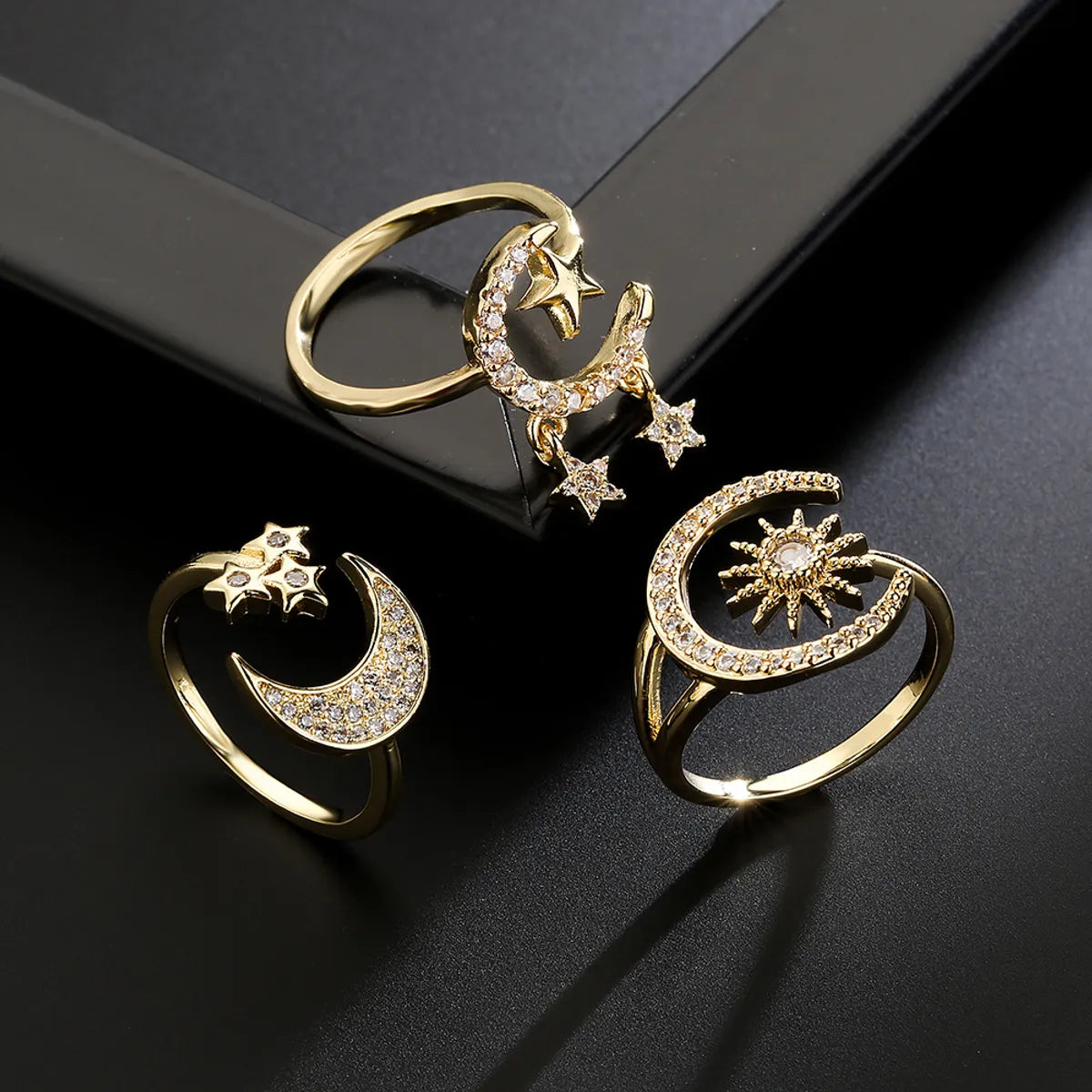 Fashion Geometric Copper 18k Gold Zircon Star Moon Geometric Open Ring