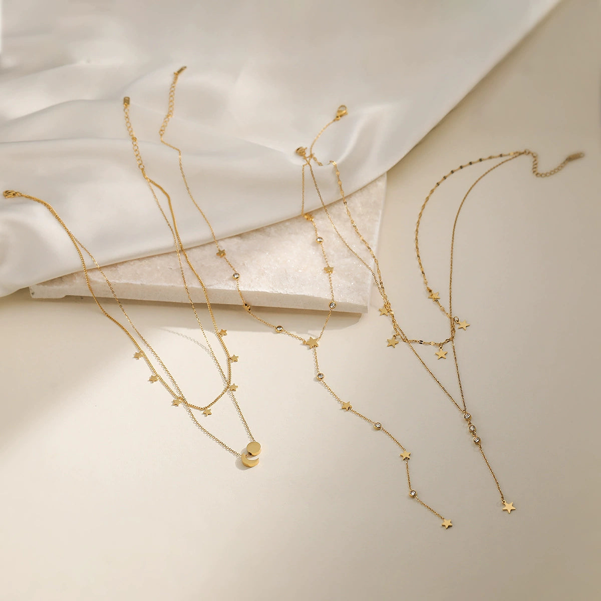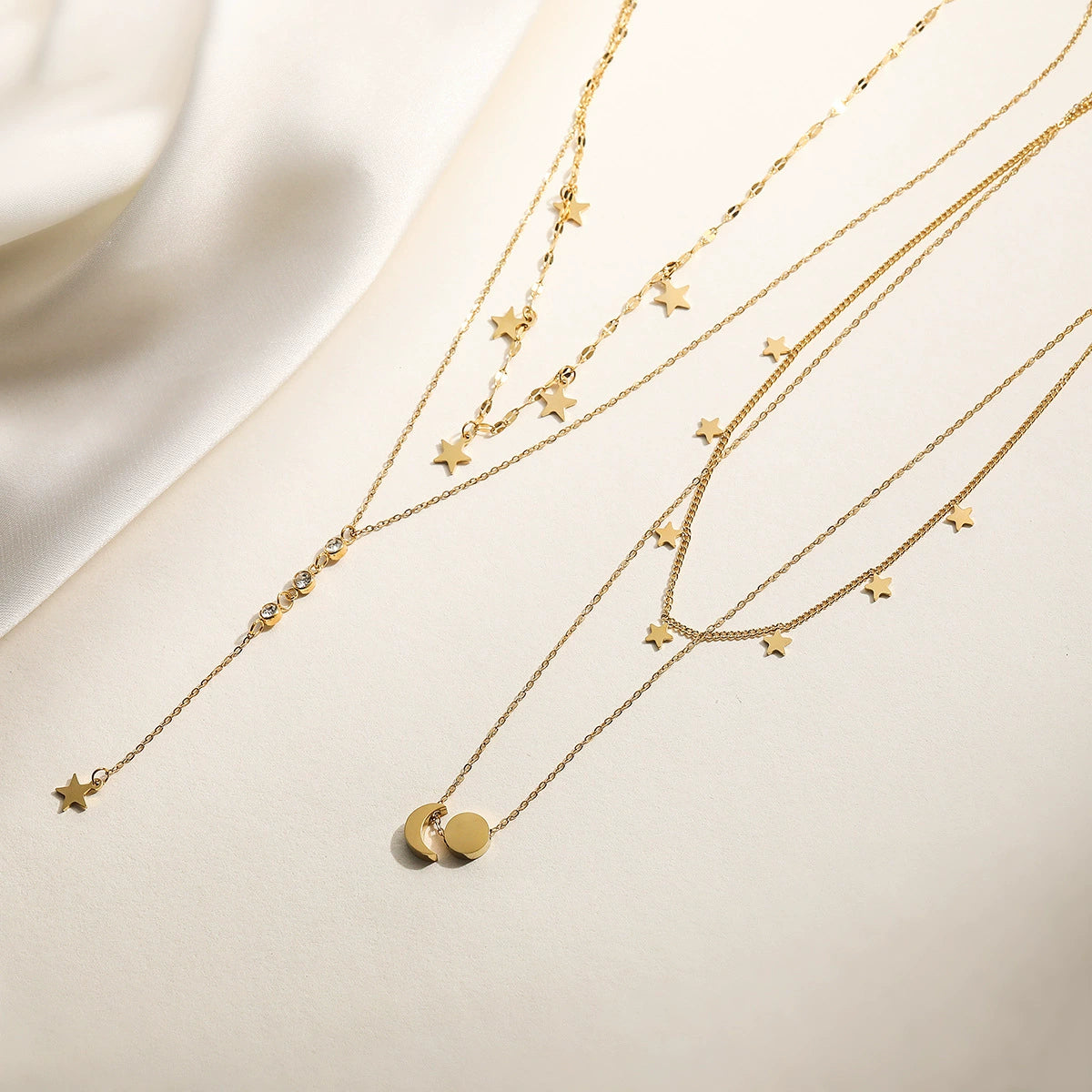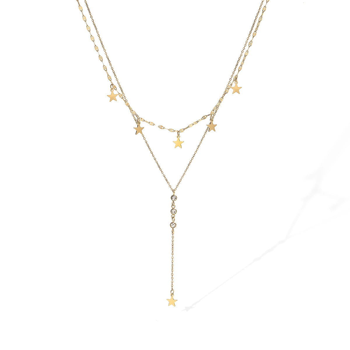 Fashion Light Luxury Stainless Steel Geometric Star Tassel Necklace 18K Gold Plated