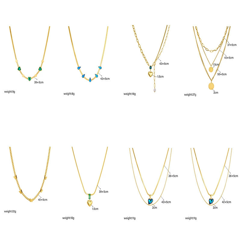 Fashion Retro Titanium Steel Heart Water Drop Butterfly Round Pendant Necklace With Electroplating