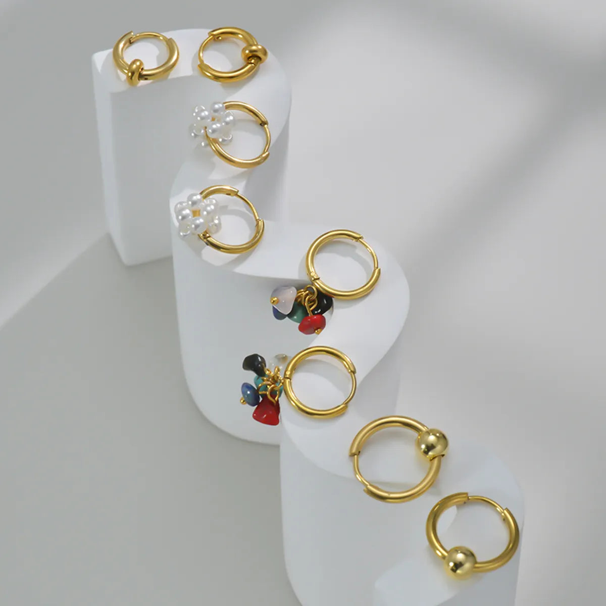 Fashion Solid Color Plating Stainless Steel Artificial Pearls Natural Stone Drop Earrings