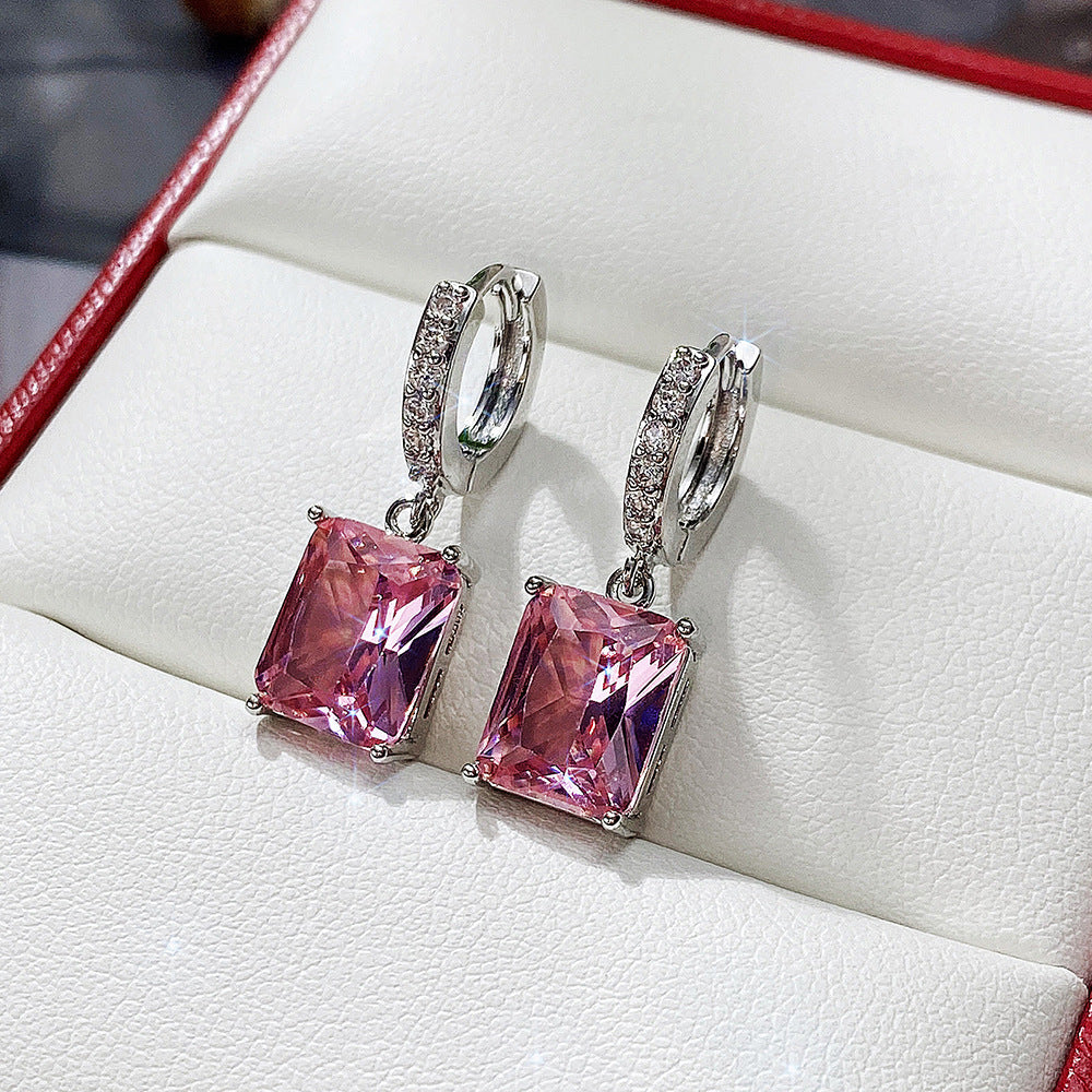 Fashion Square Copper Inlay Zircon Drop Earrings 1 Pair