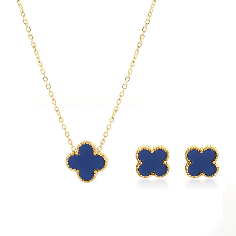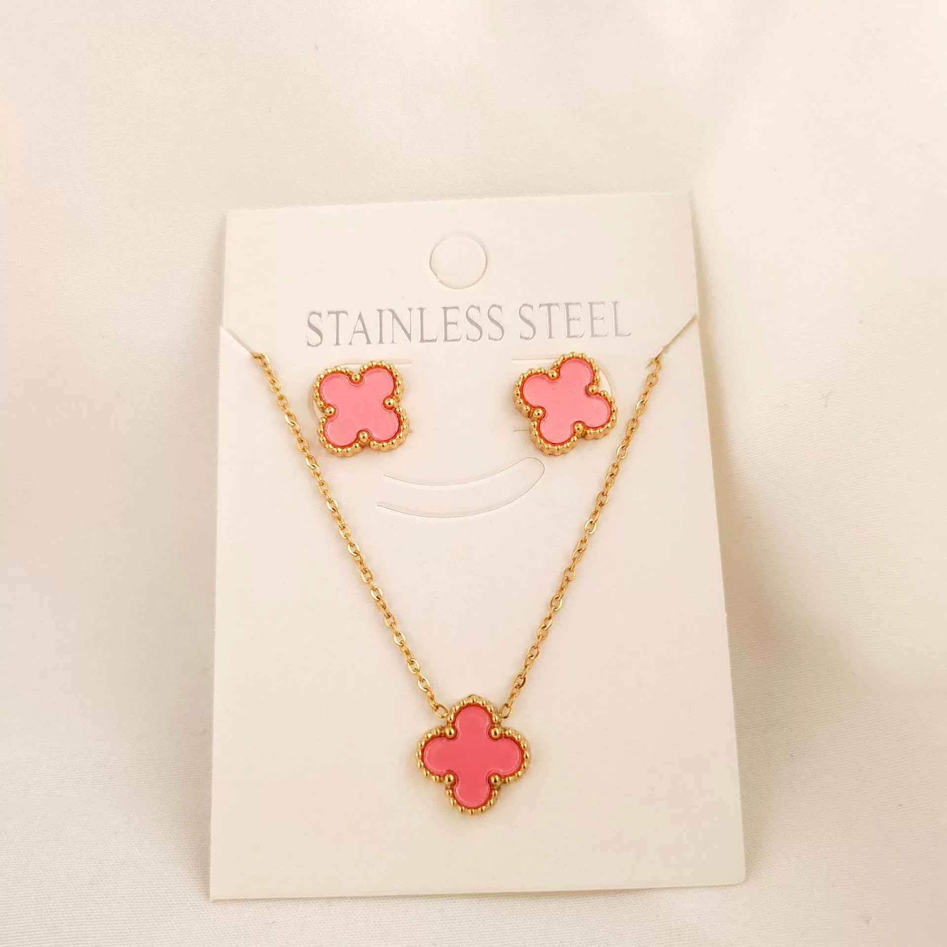Fashion Titanium Steel Fourleaf Clover Necklace And Earrings Set With Furnace Vacuum Plating