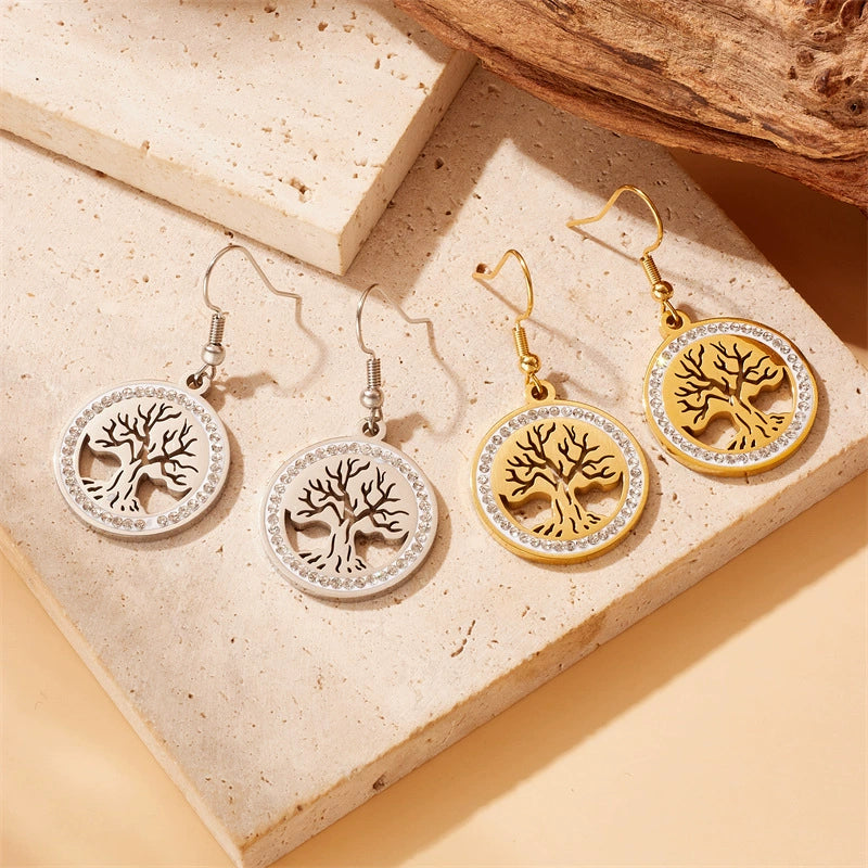 Fashion Tree Of Life Pendant Stainless Steel Jewelry Earrings Gold Plated