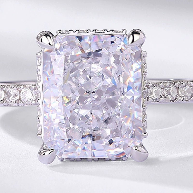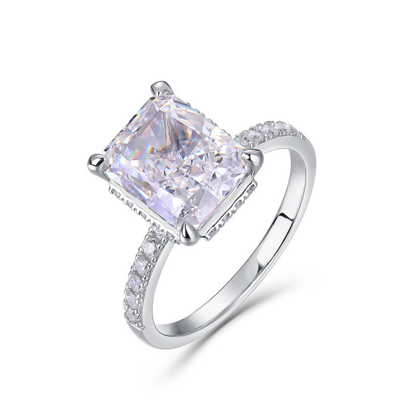 Finger Ring 925 Silver Square Geometric Ice Flower Cut High Carbon Diamond Women's