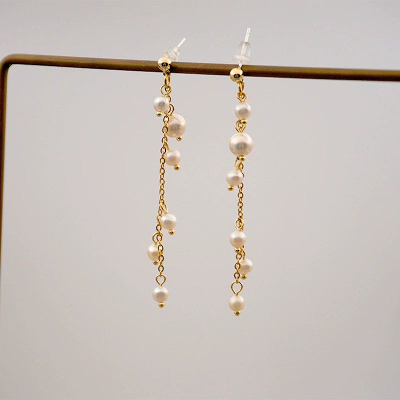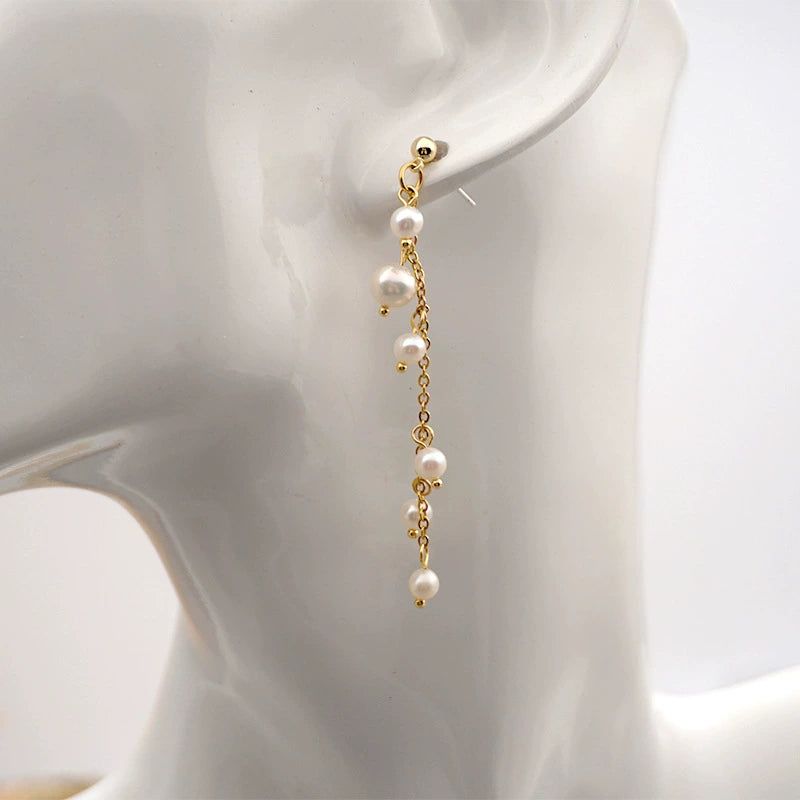 Fringed Beaded Freshwater Pearl Geometric Retro Women's Earrings