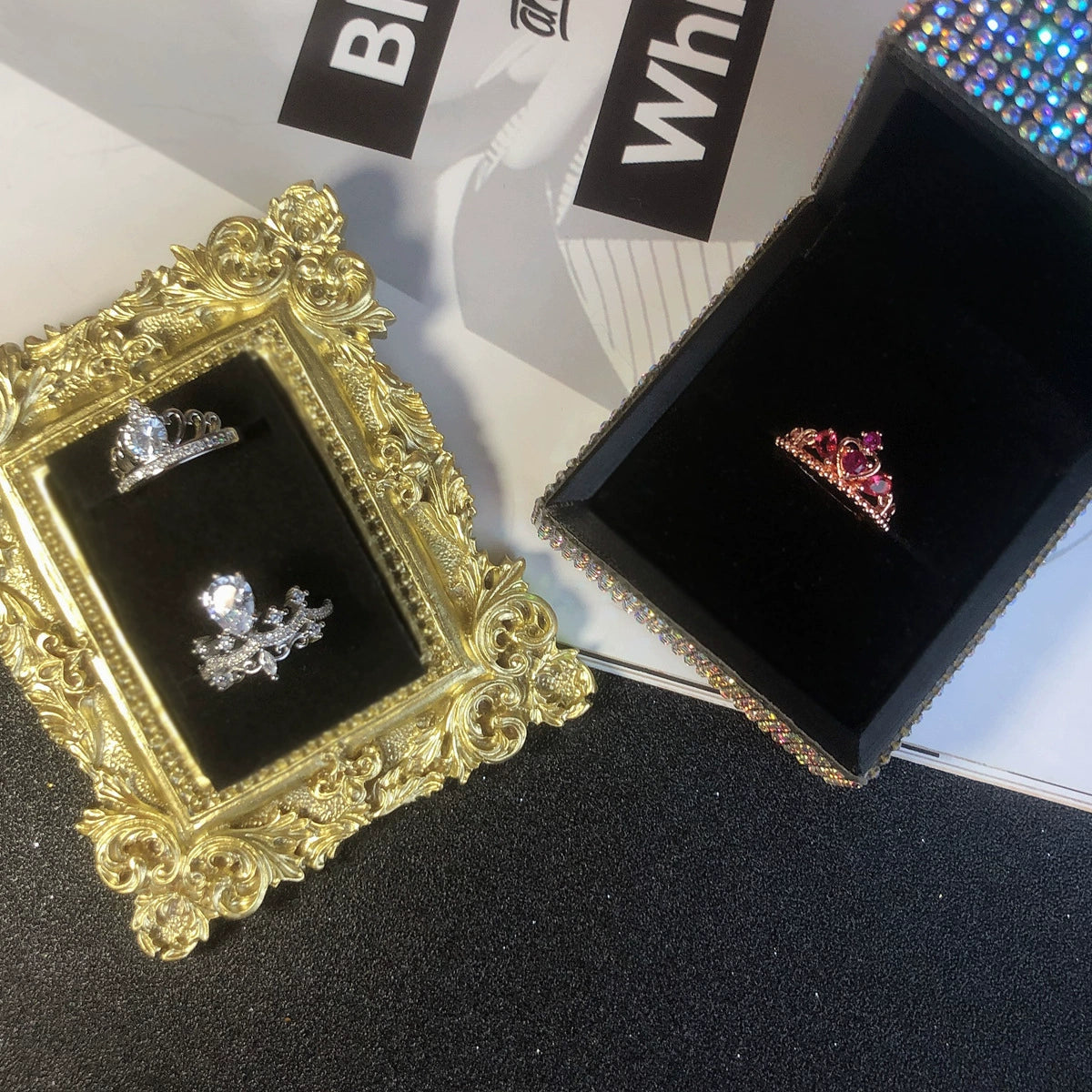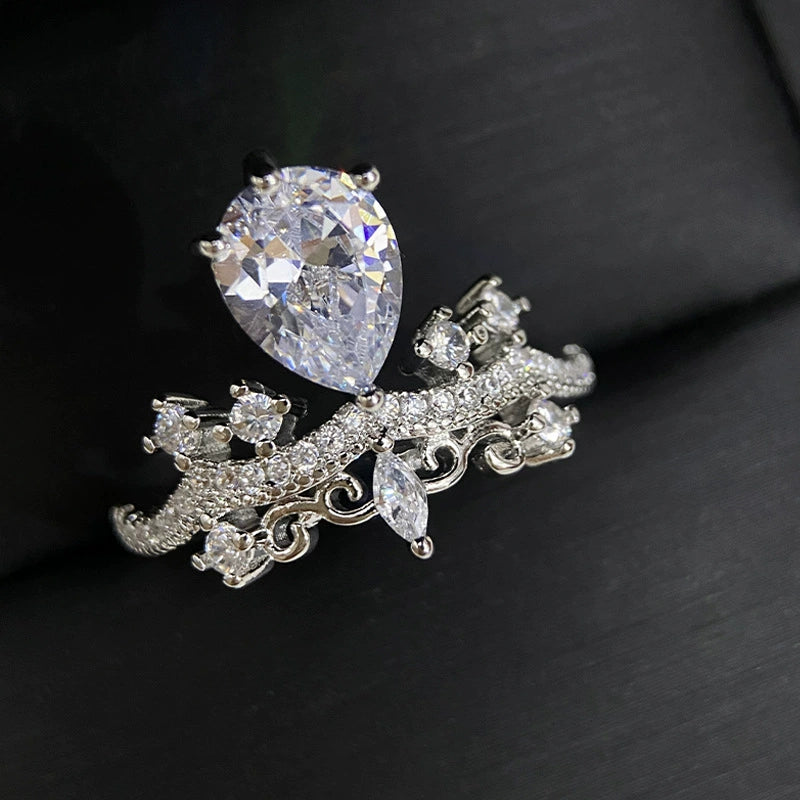 Girls' Heart Shaped Light Luxury Copper Ring With Zircon Inlay And Crown Pattern