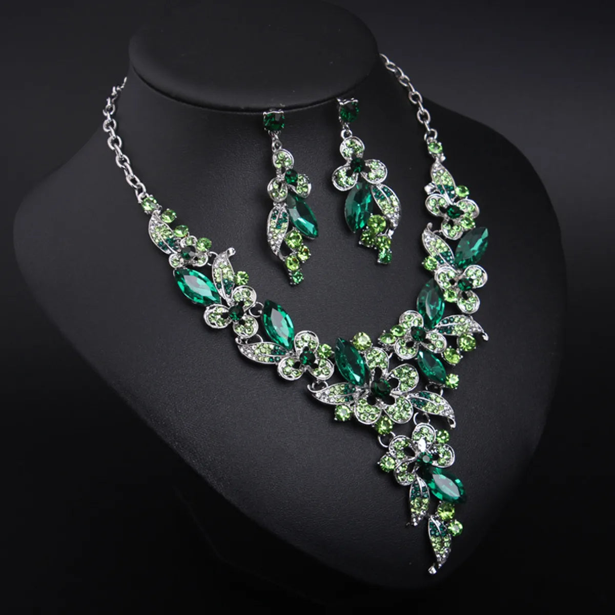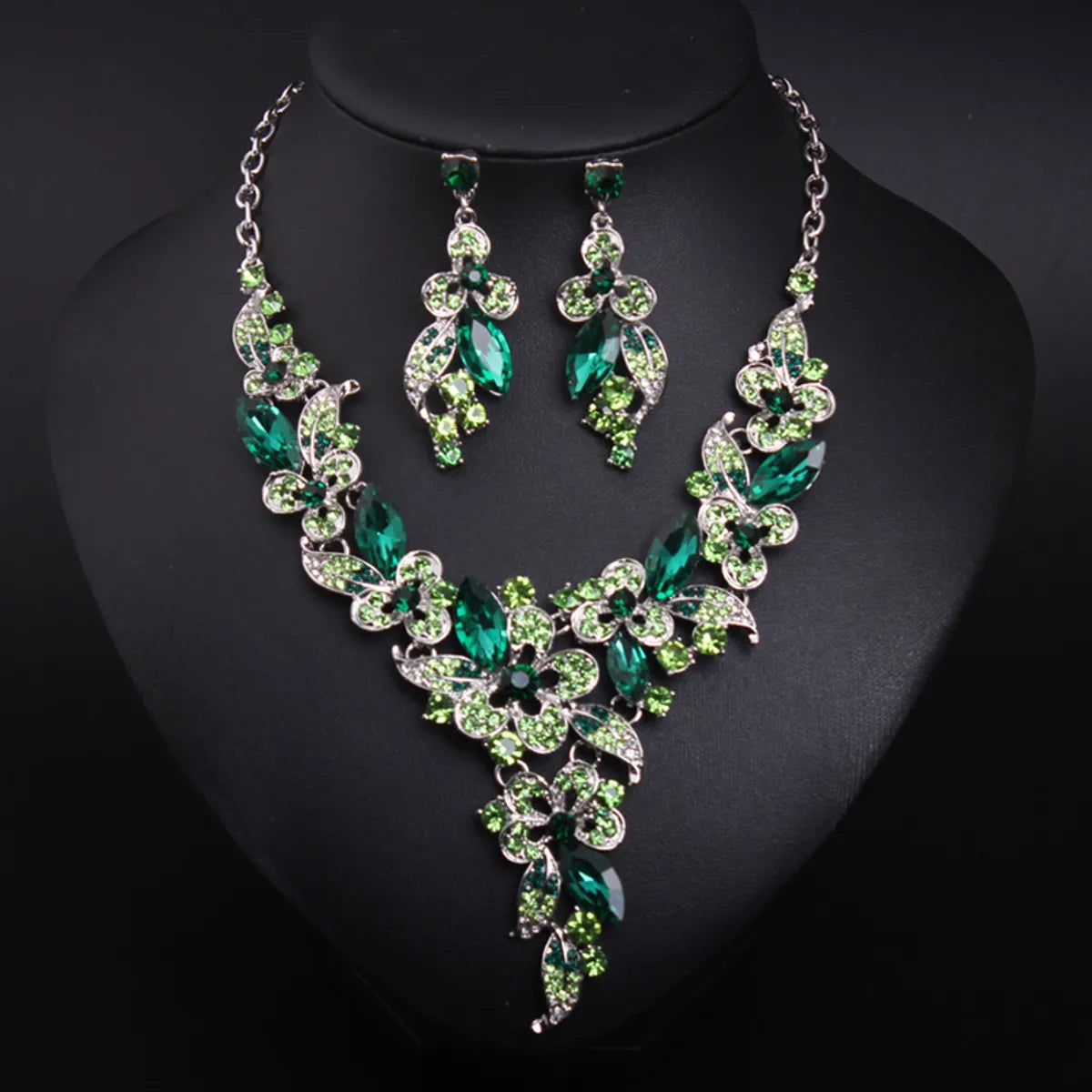 Glam Fashion Flower Artificial Crystal Alloy Inlaid Crystal Artificial Rhinestones Earrings Necklace Jewelry Set