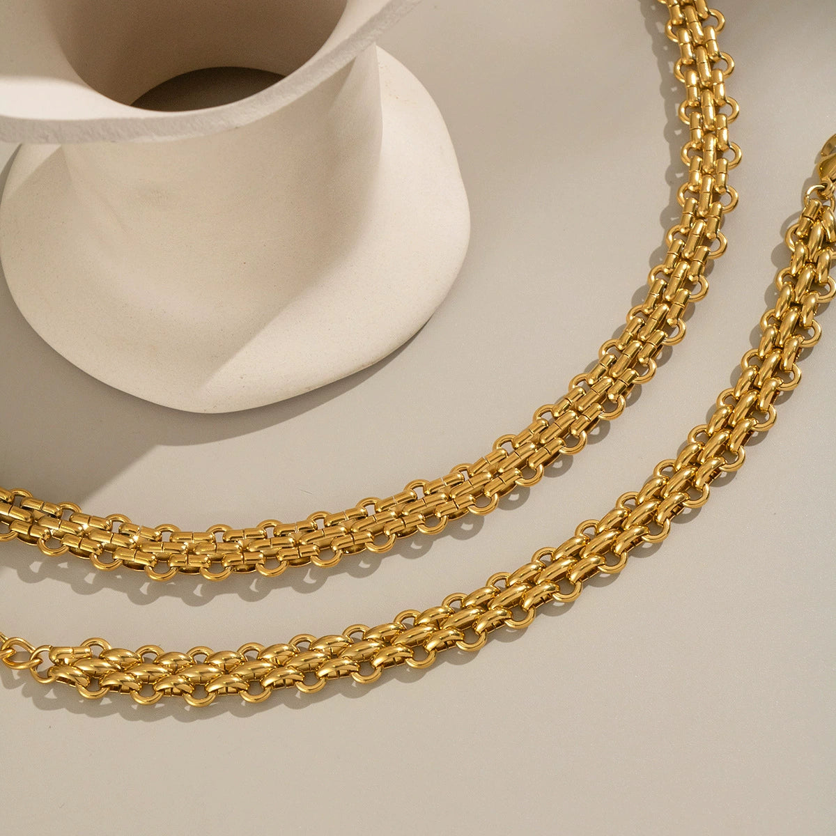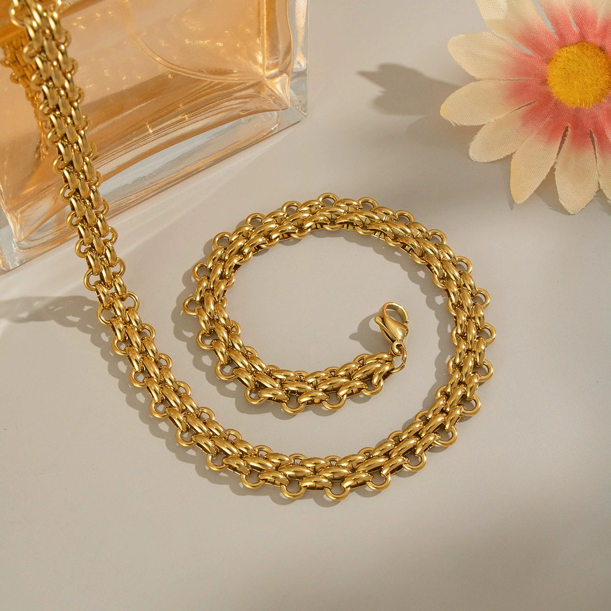Handmade Butterfly Chain Necklace And Bracelet Combination Punk Hiphop Stainless Steel Geometric Electroplated