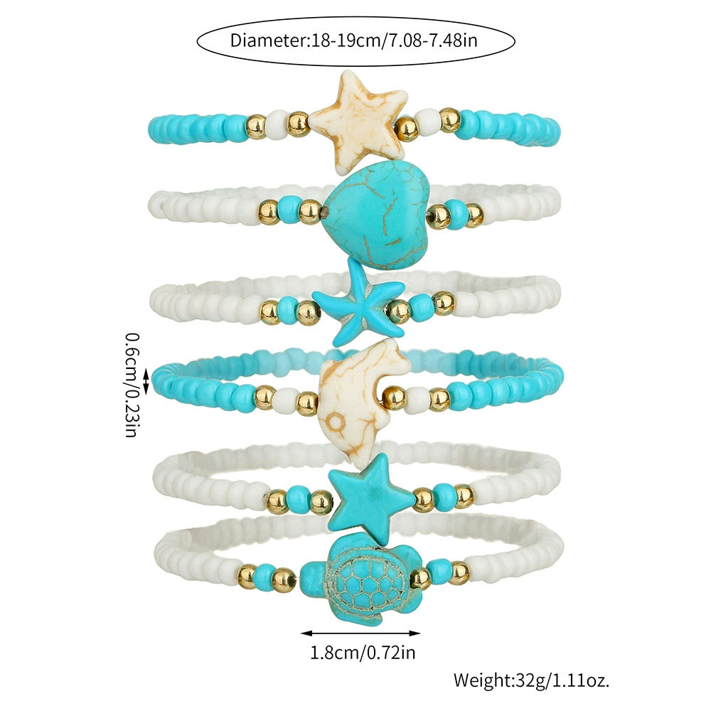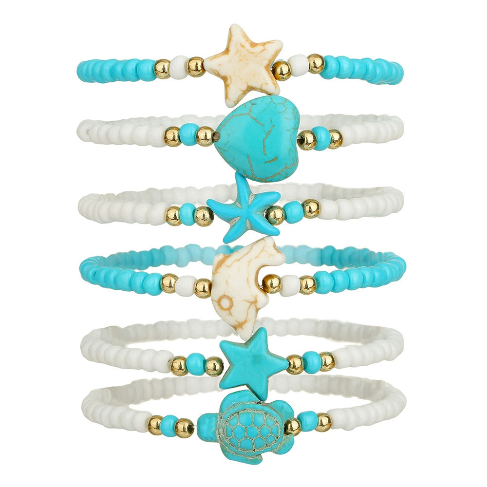 Handmade Unisex Bohemian Style Bracelet And Anklet With Rice Beads Pine Stone Animal And Zodiac Pattern Heart Starfish Turtle Shape