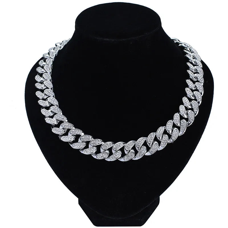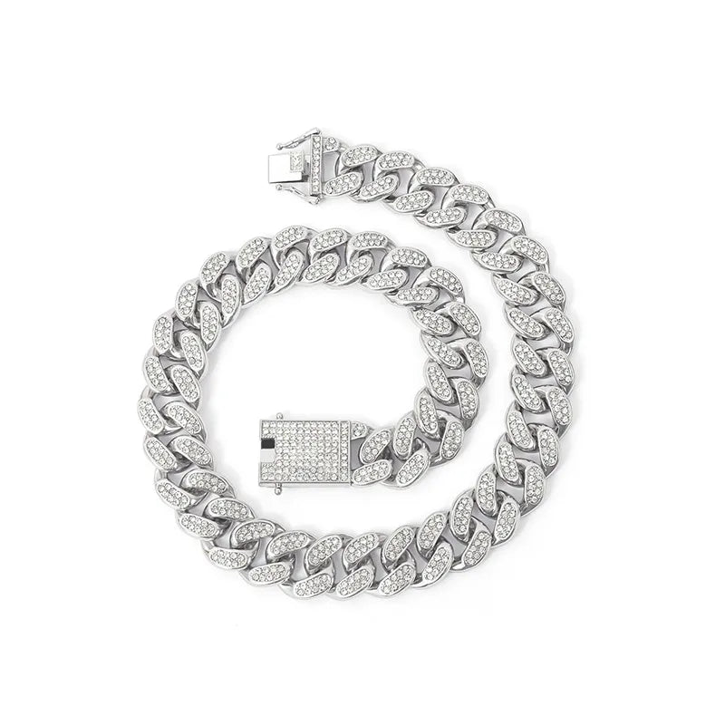 Hip-Hop Retro Waves Zinc Alloy Inlay Rhinestones Men'S Bracelets Necklace