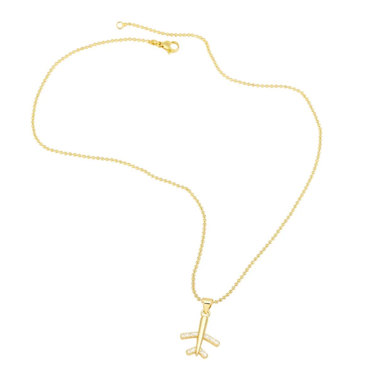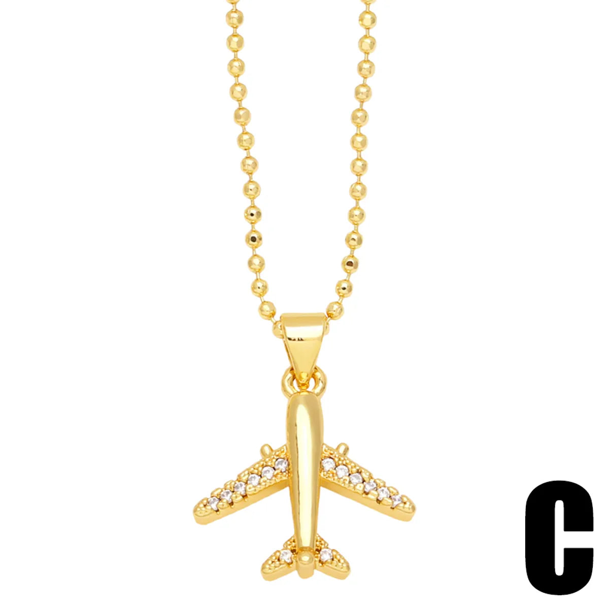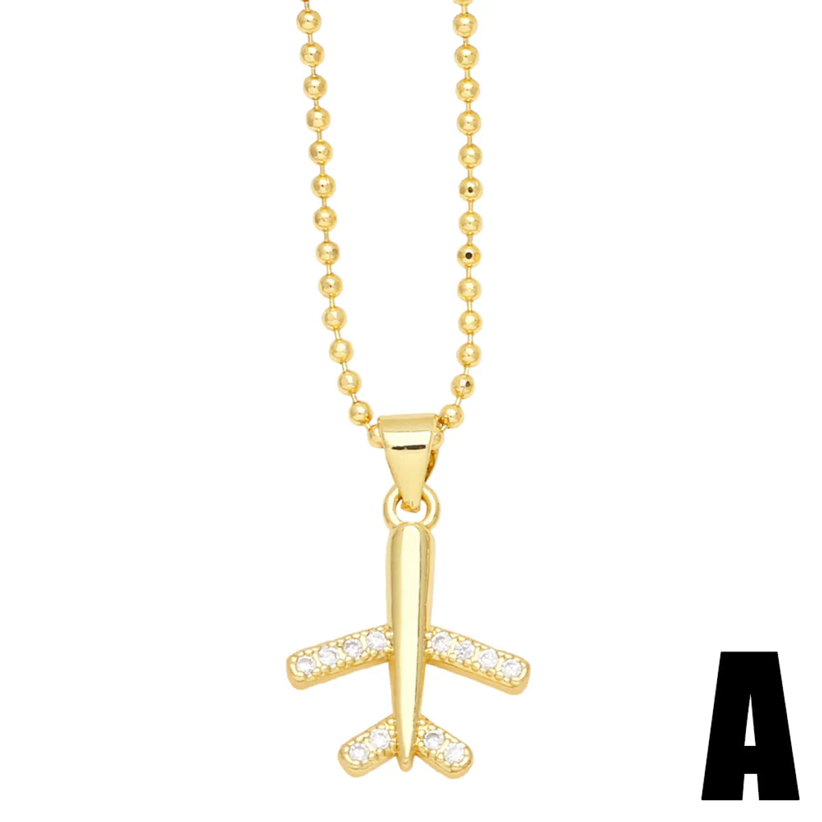 Ig Style Cool Style Airplane Copper 18k Gold Plated Zircon Pendant Necklace In Bulk
