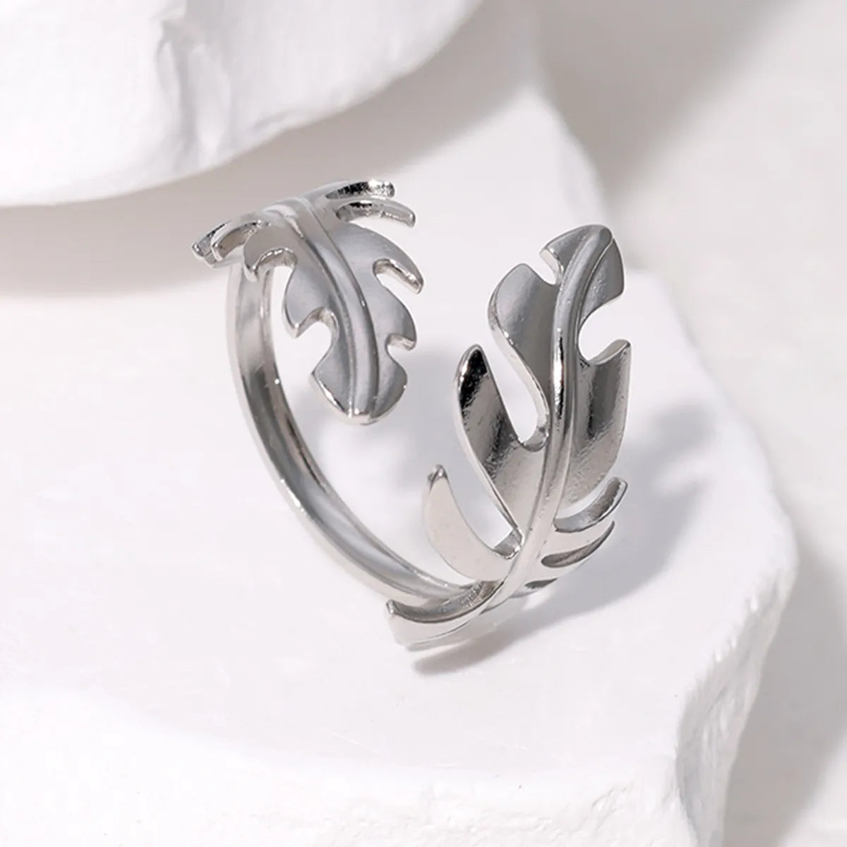 IG Style Modern Style Simple Style Leaves 304 Stainless Steel 18K Gold Plated Open Rings In Bulk