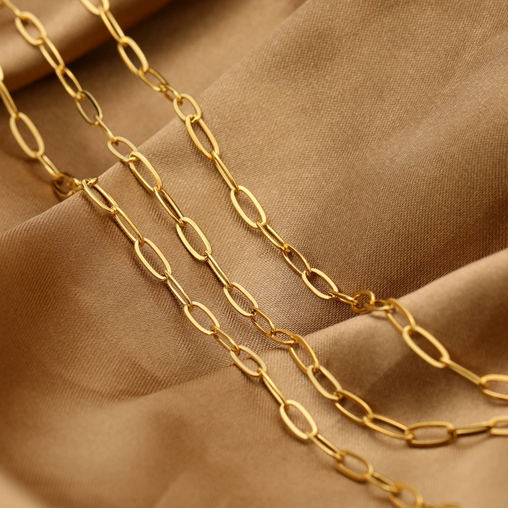 Jewelry Accessories Stainless Steel Flattened Oshaped Cross Electroplated Hiphop Geometric Ellipse Chain Pendant Necklace
