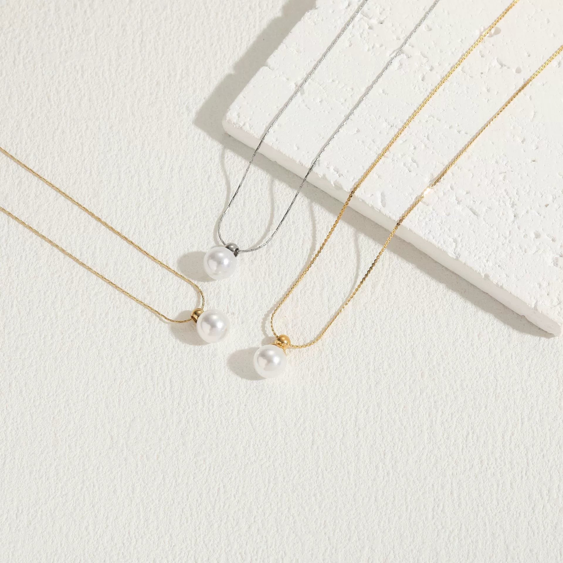 Jewelry Necklace Titanium Steel Chain With Freshwater Abs Pearl Pendant Geometric Style Electroplated