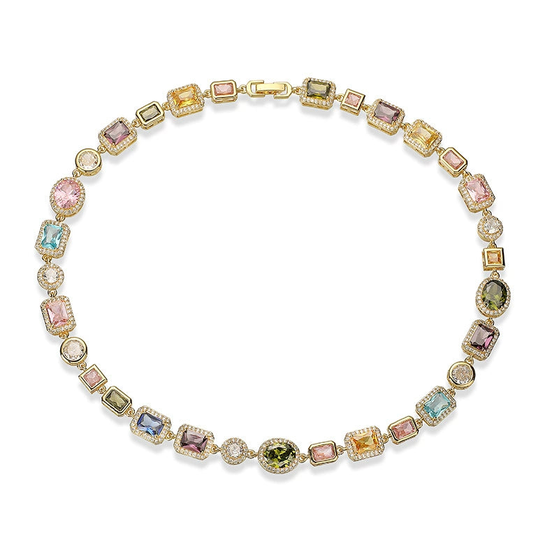 Jewelry Set Geometric Cuban Chain Copper Zirconia Light Luxury Choker Necklace And Bracelet