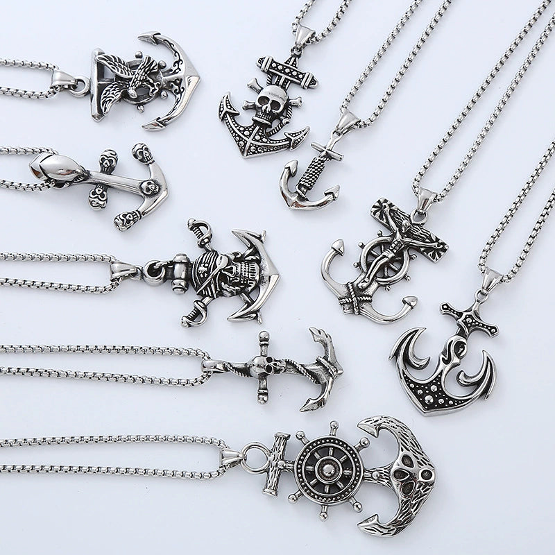 Jewelry Stainless Steel Geometric Anchor Skull Punk Hiphop Street Style Polishing Necklace