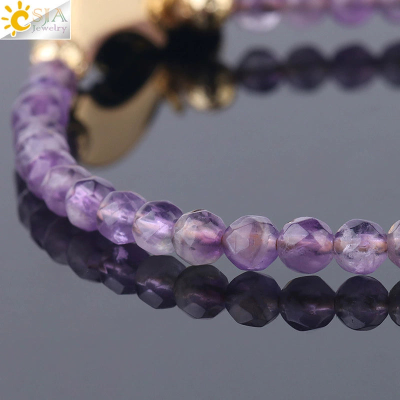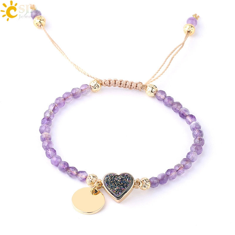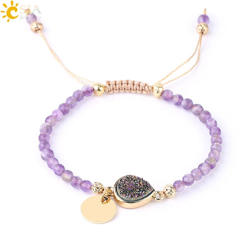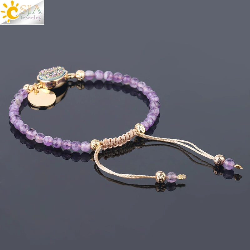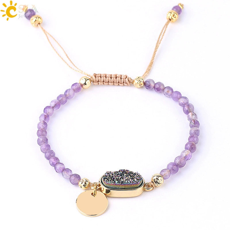 Ladies Minimalist Bracelet Natural Stone Alloy Accessories Gold Plated Amethyst Crystal Bud