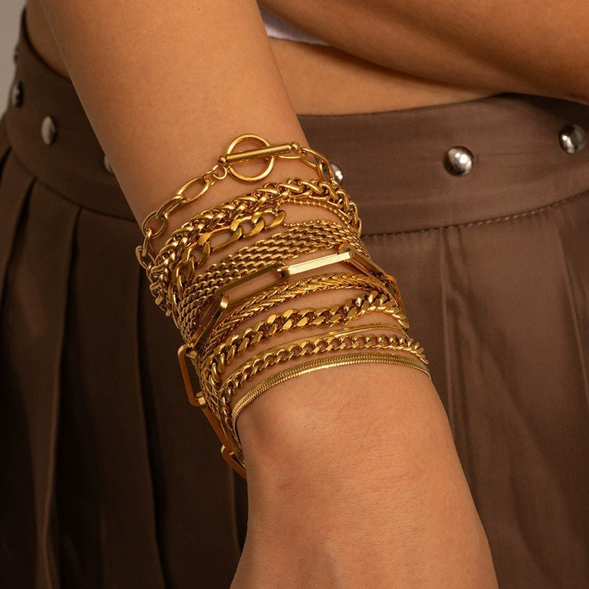 Ladies Stainless Steel Bracelet With Original Design Geometric Style Real Gold Plating Inlaid Zircon