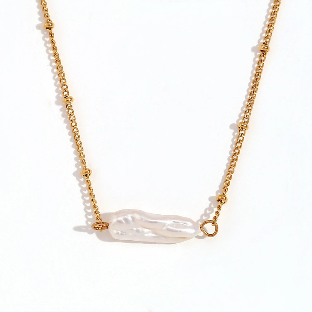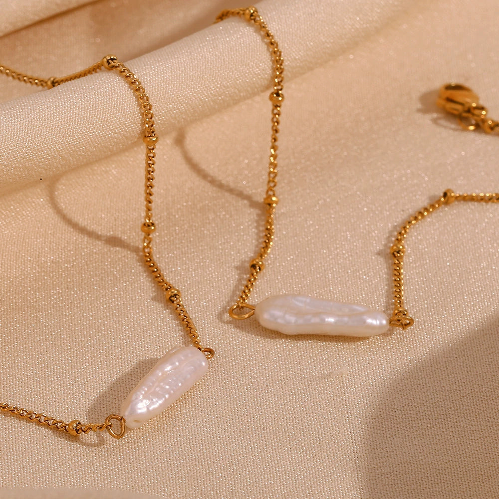 Light Luxury Internet Celebrity Women's Bracelet Set With Baroque Pearl Pendant Necklace Stainless Steel Electroplated Geometric Style