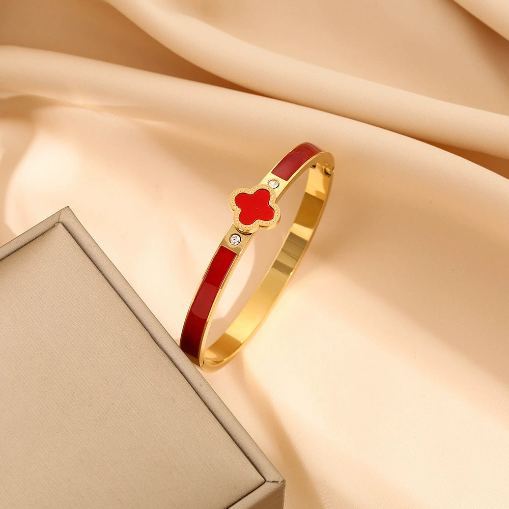 Lucky Clover Titanium Steel Bracelet Light Luxury Enamel Geometric Polishing