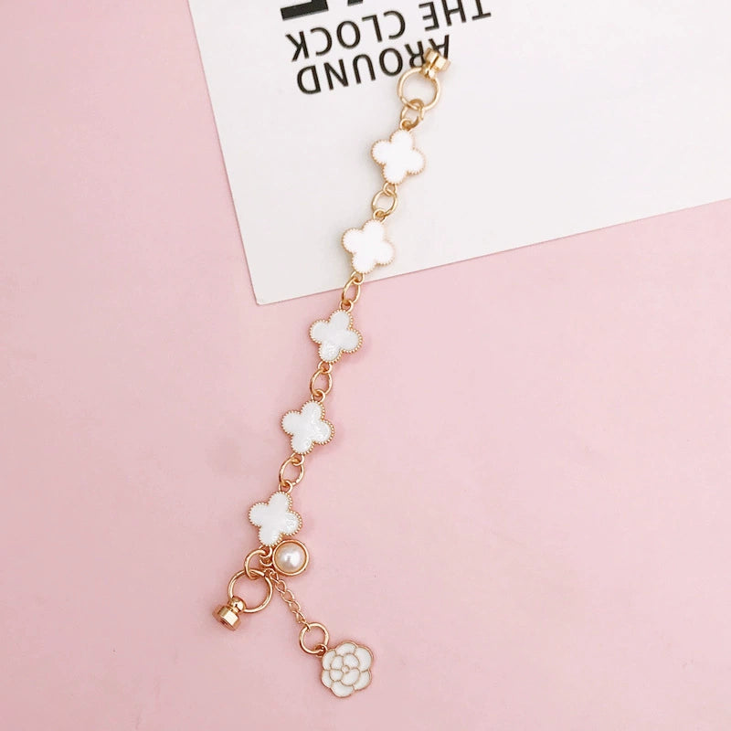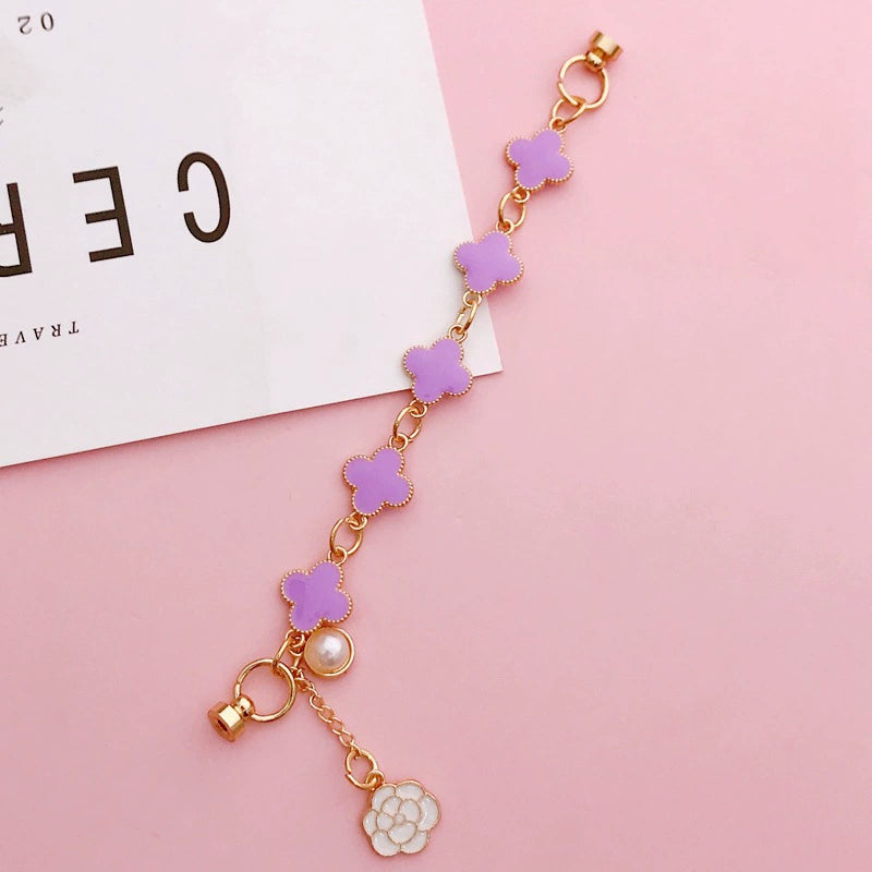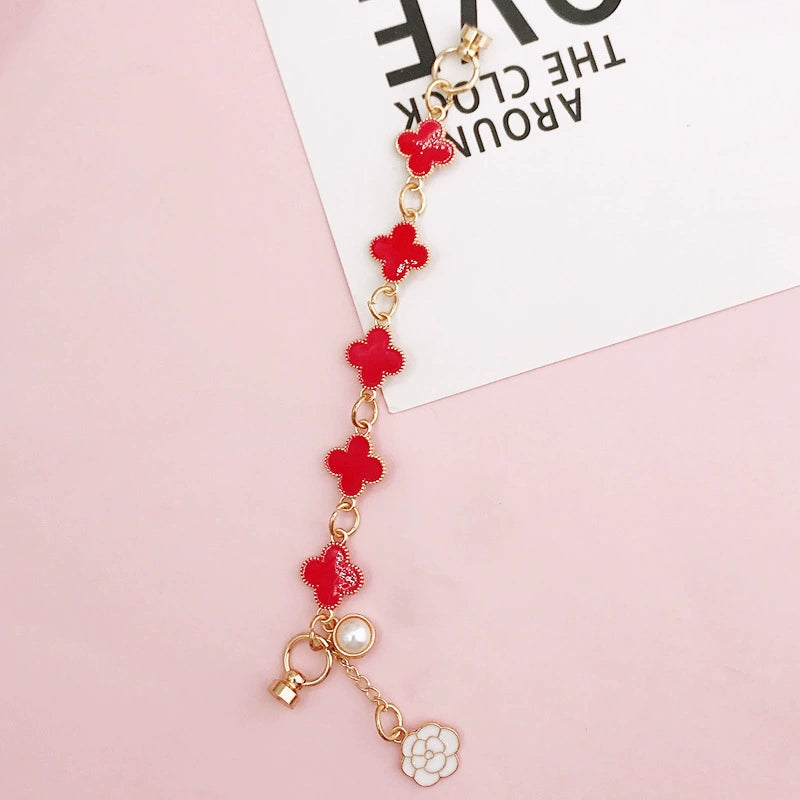 Lucky Fourleaf Clover Zinc Alloy Bracelet Phone Case Accessories With Oil Dropping And Plating Process And Turnbuckle Fixation