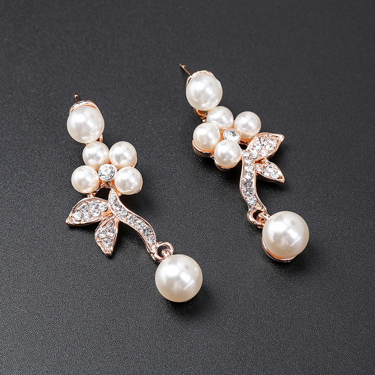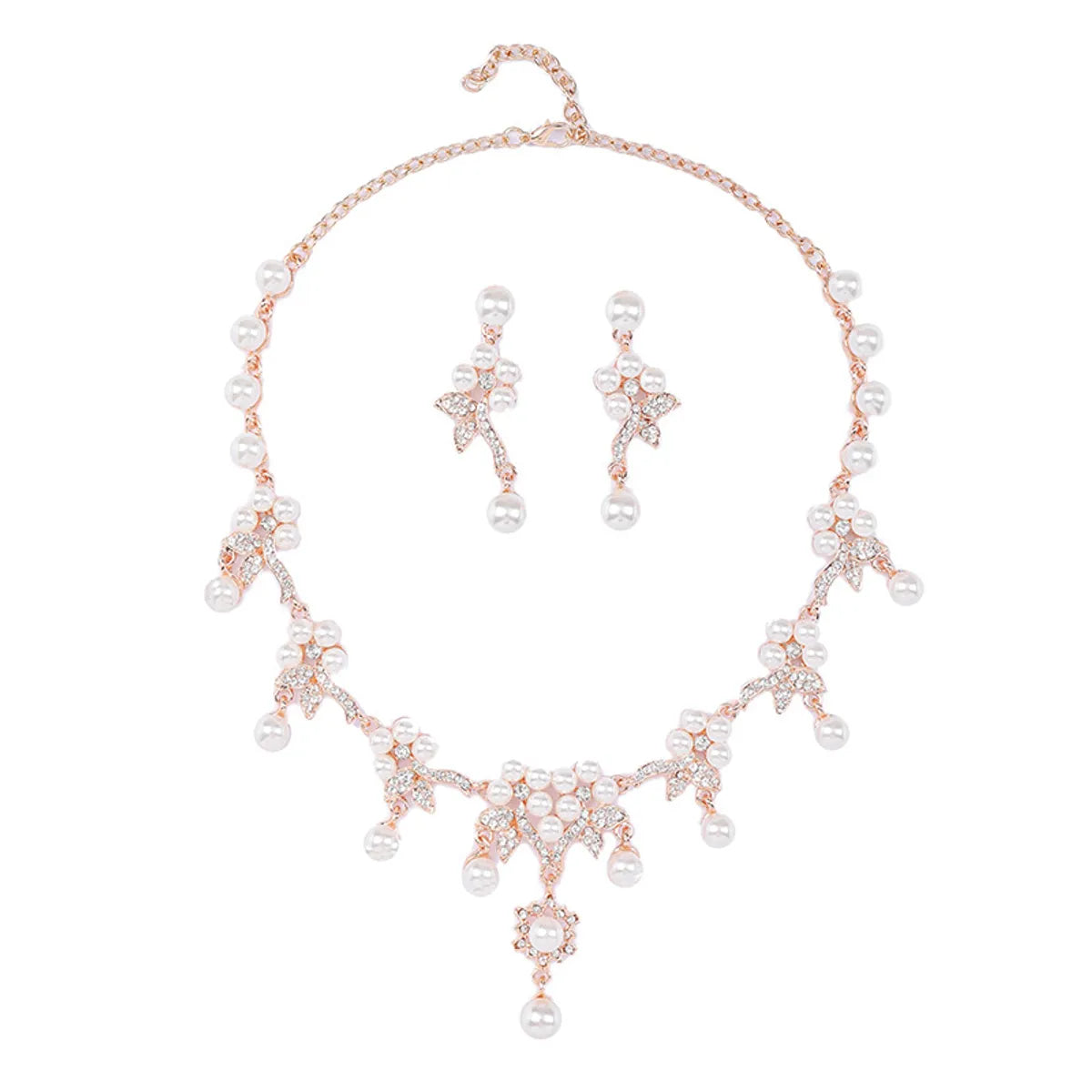 Luxurious Leaves Alloy Plating Artificial Pearls Rhinestones Women'S Earrings Necklace