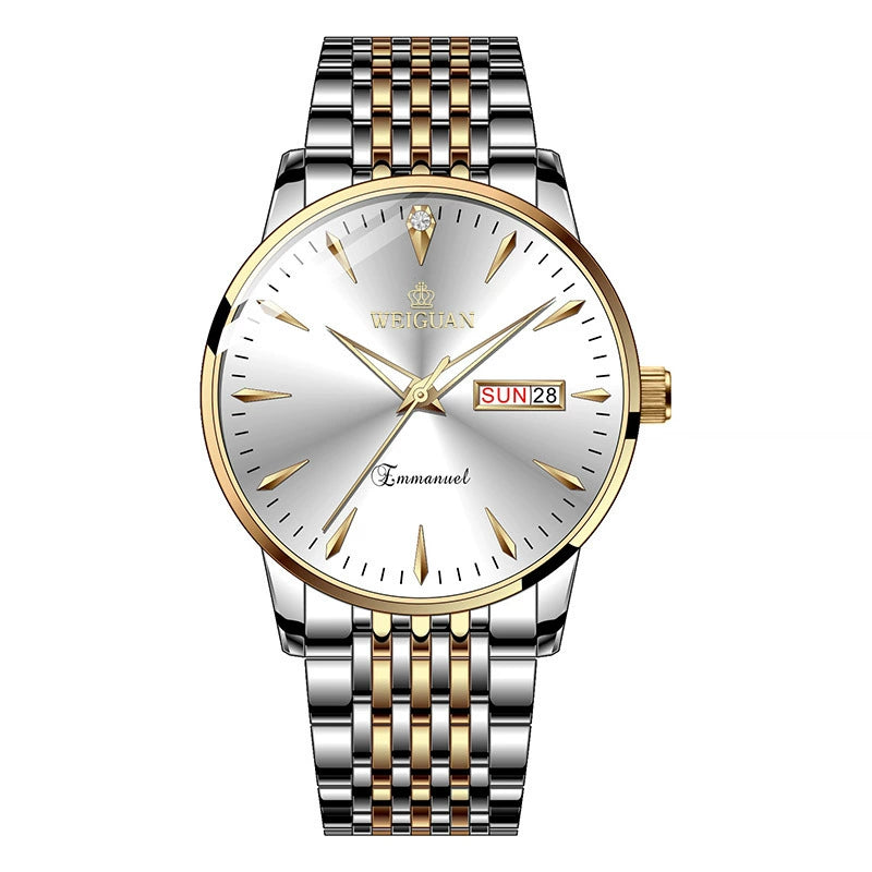 Men's Stainless Steel Business Quartz Watch Full Automatic Double Calendar Luminous Waterproof Round Dial
