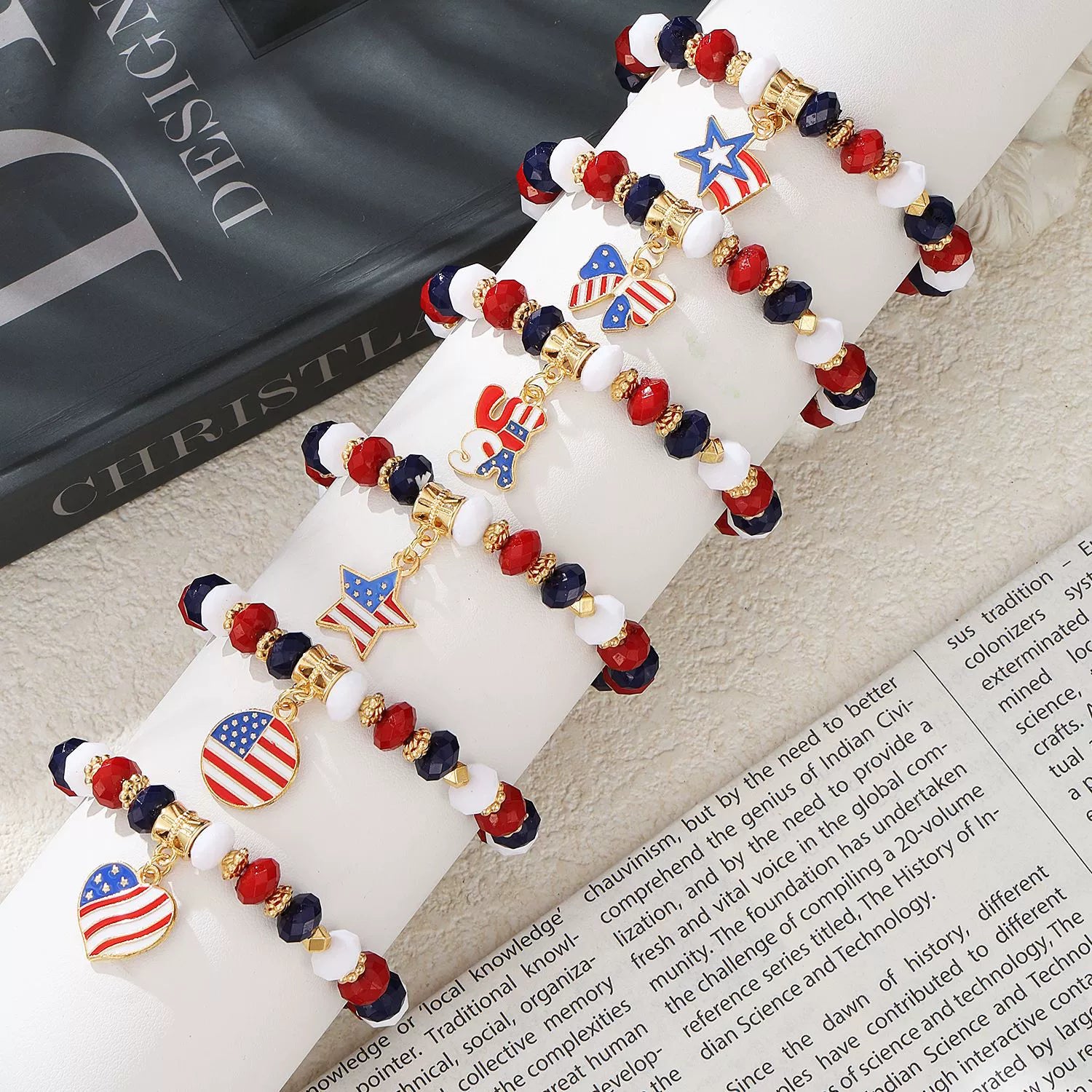 Multilayer Beaded Elastic Bracelet Mixed Material Handmade With Bow Tie Pattern And Fivepointed Star Crystal