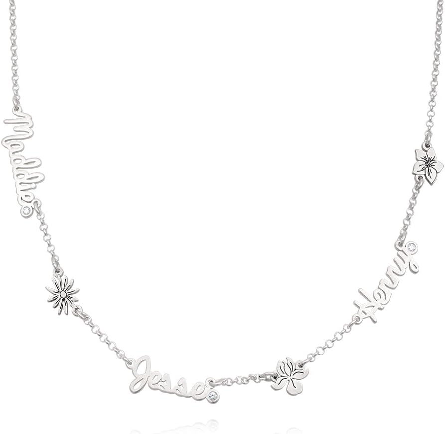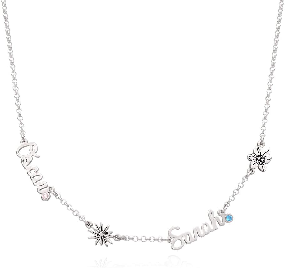 Personalized Blooming Birth Flower Multi Family Name Necklace with Birthstones or Diamonds