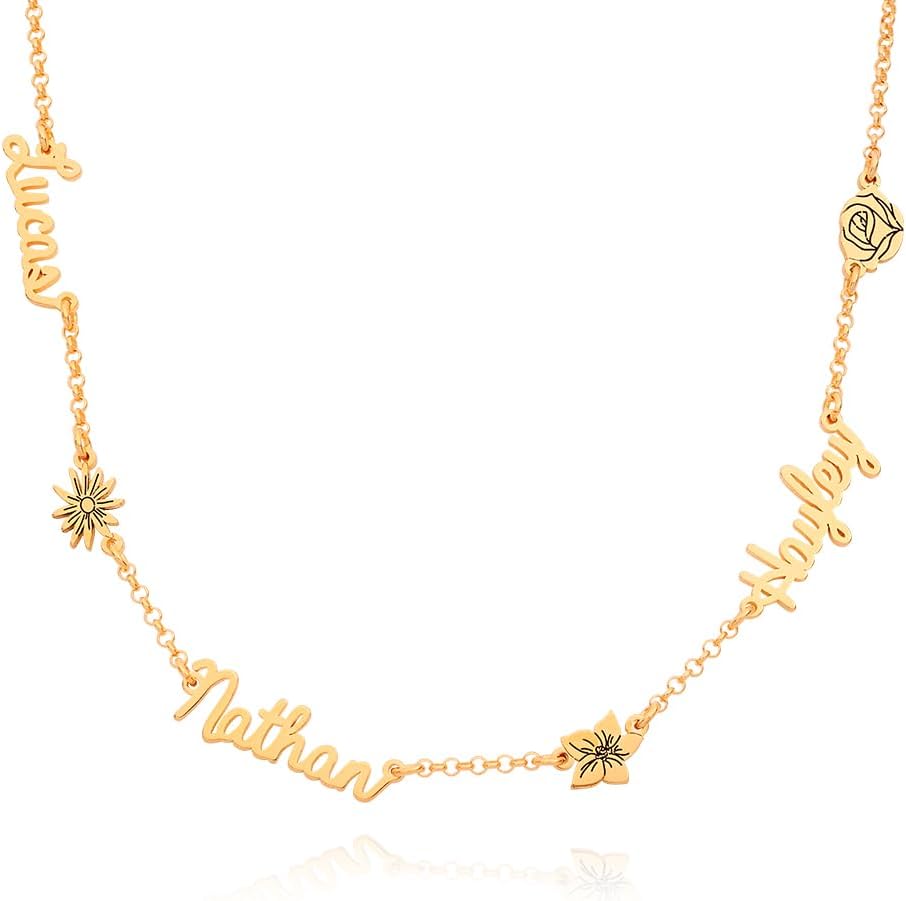 Customizable with up to 3 names and birth flowers Each name comes with a corrispoinding birth flower. Available in 5 adjustable lengths.