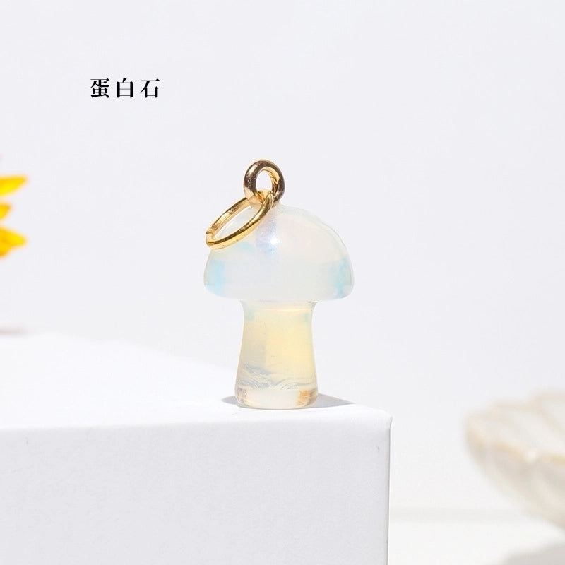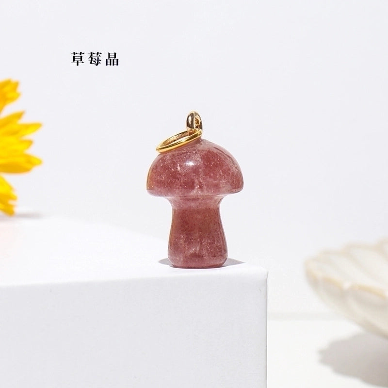 Natural Crystal Small Mushroom Pendant Agate Semi-precious Stone Ore Diy Necklace Ornament Wholesale
