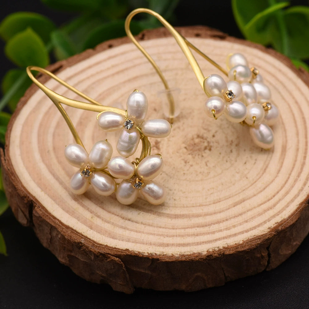 Natural Freshwater Pearl Geometric Earrings Retro High End Jewelry For Women