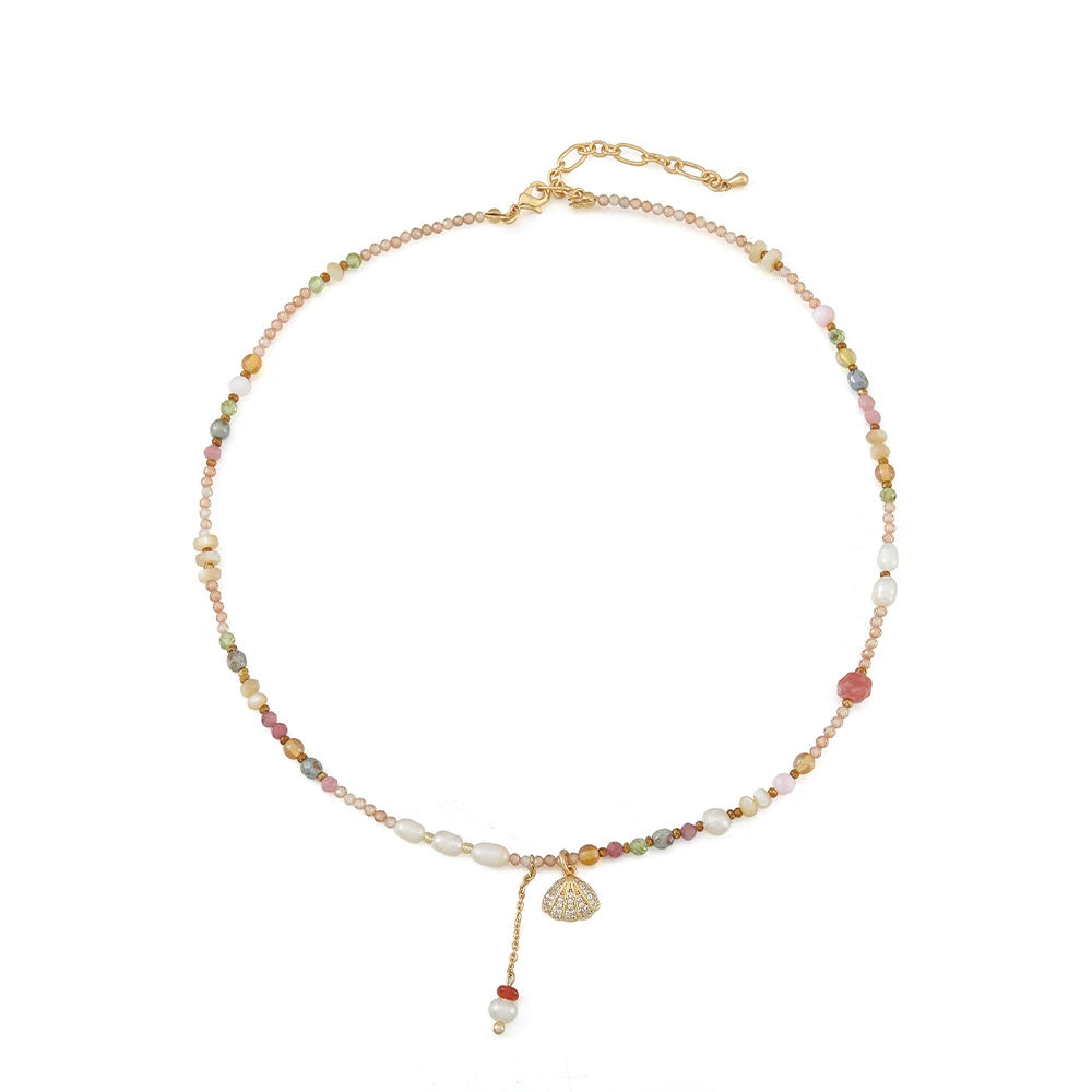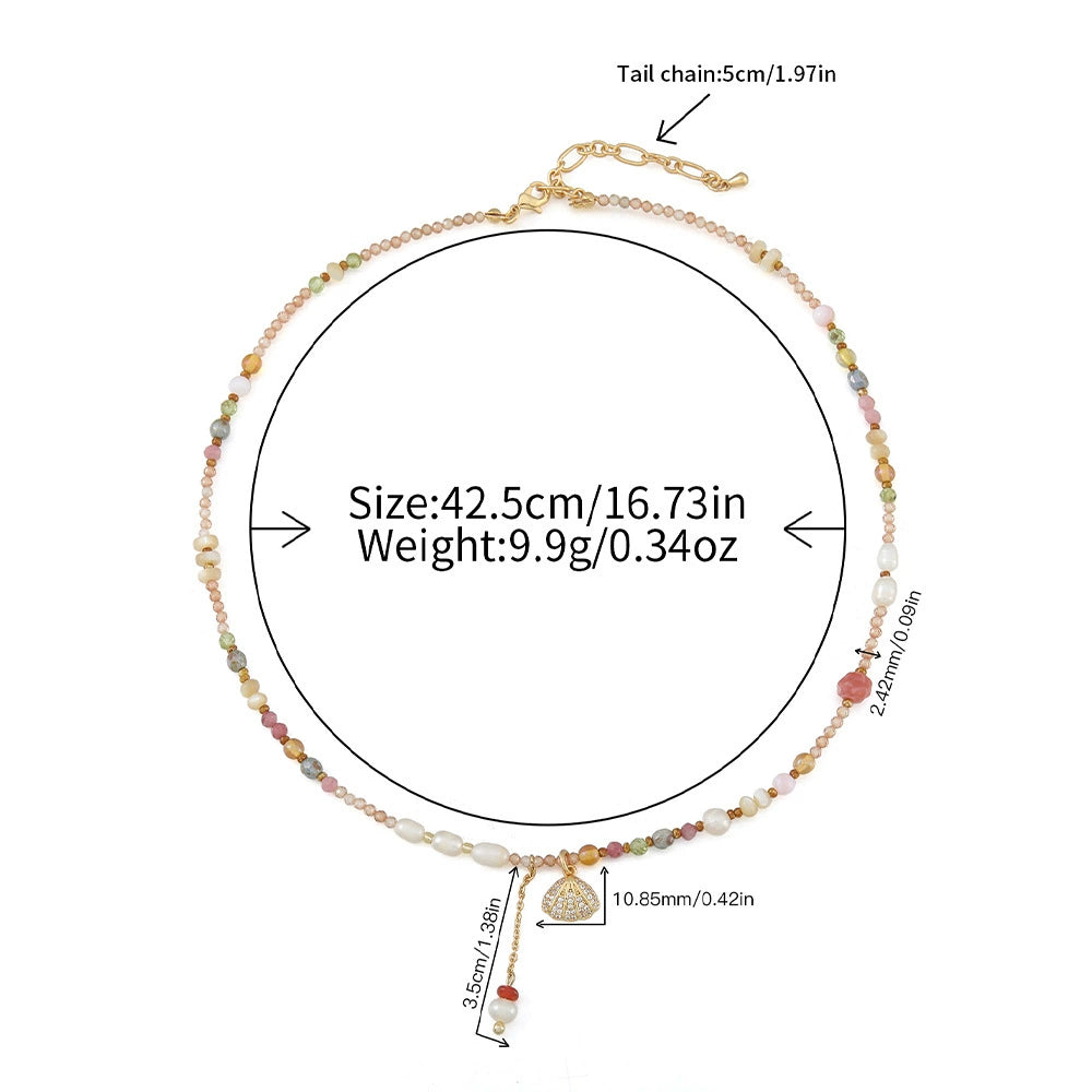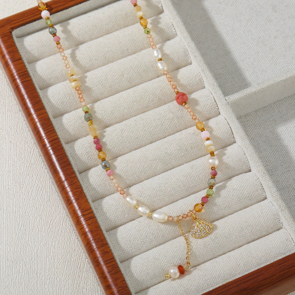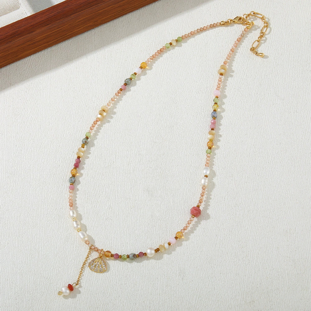Necklace Shell Natural Freshwater Pearl Crystal Copper Pendant Manual Design Vacation Style Minimalist Women's